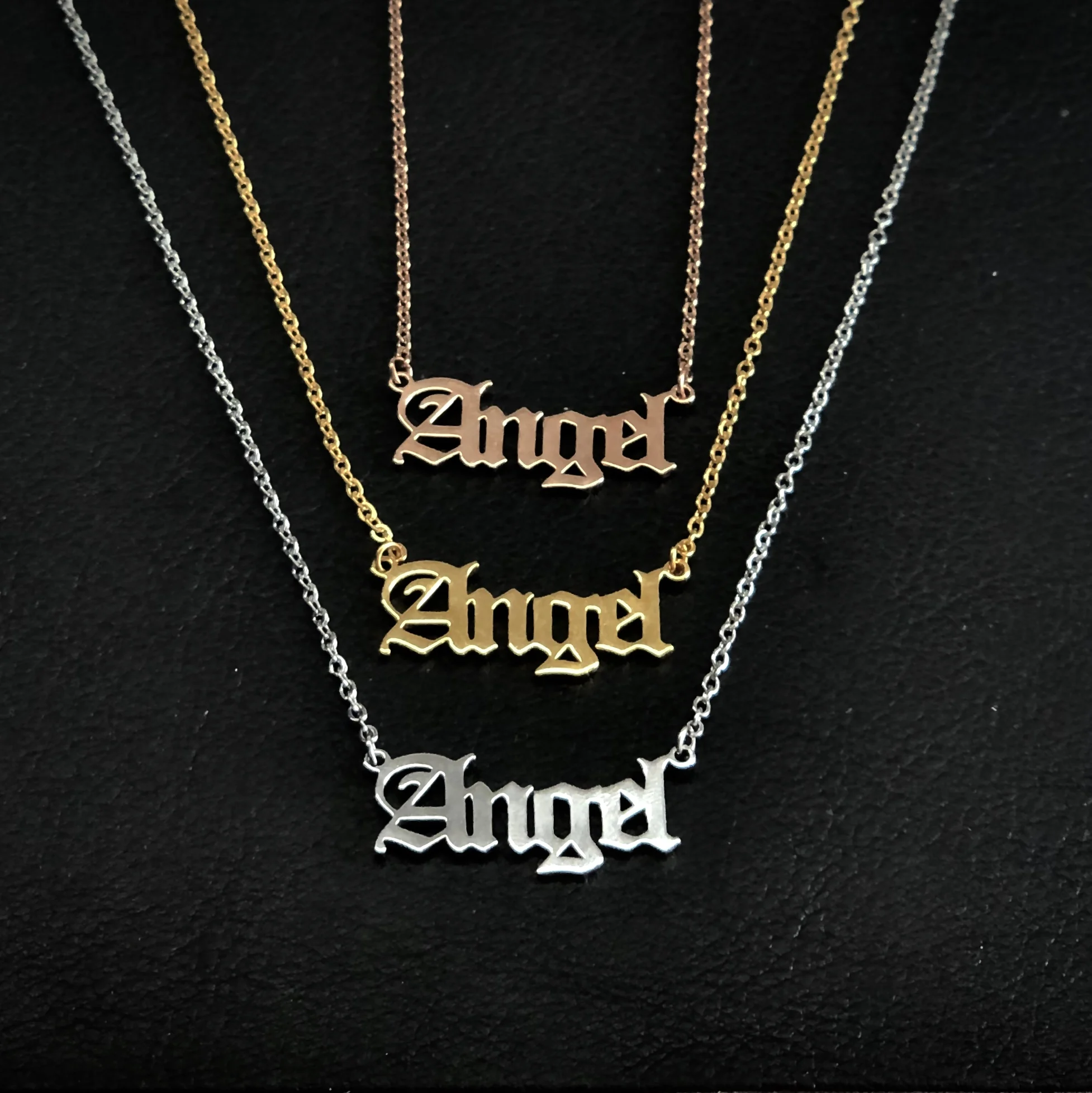 Старый английский шрифт ожерелье Ангел кулон ожерелье для женщин из нержавеющей стали с буквенным принтом в стиле Бохо ювелирные изделия подарок для девочки в готическом стиле, Винтажное колье на цепочке