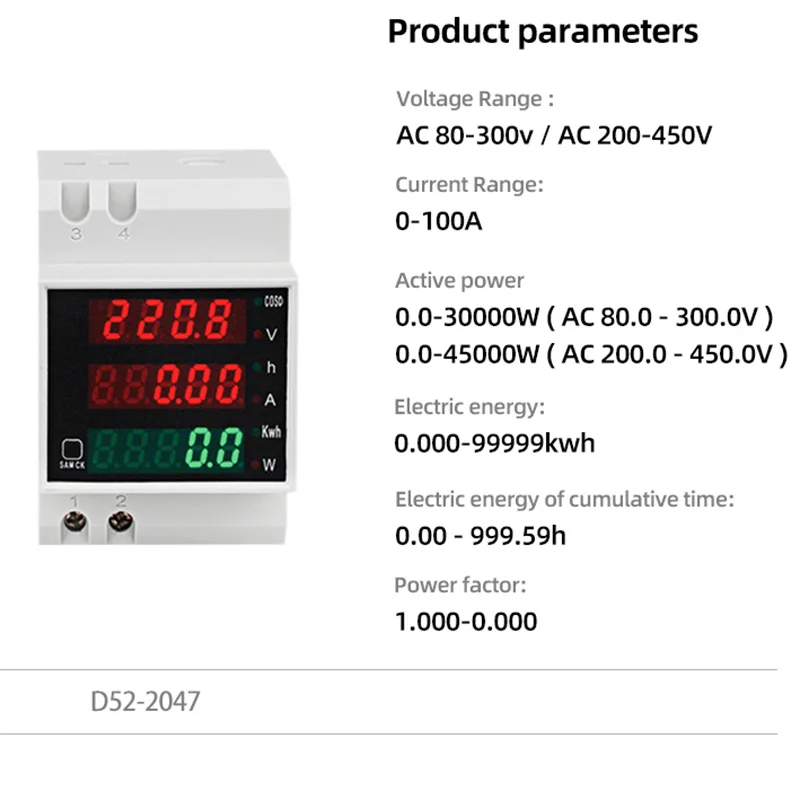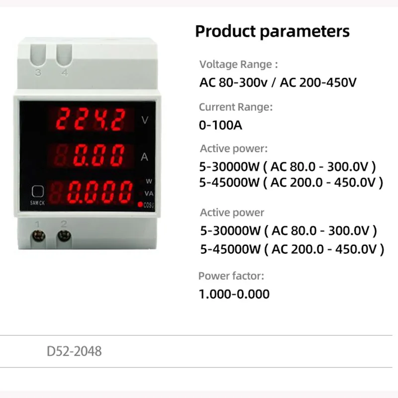 Din-рейка Многофункциональный измеритель D52-2042 D52-2047 цифровой светодиодный измеритель напряжения тока активный коэффициент мощности AC80-300V 100A