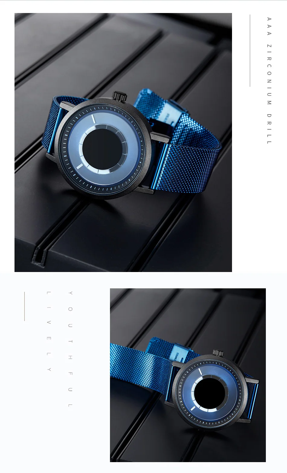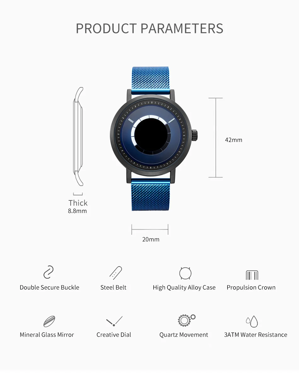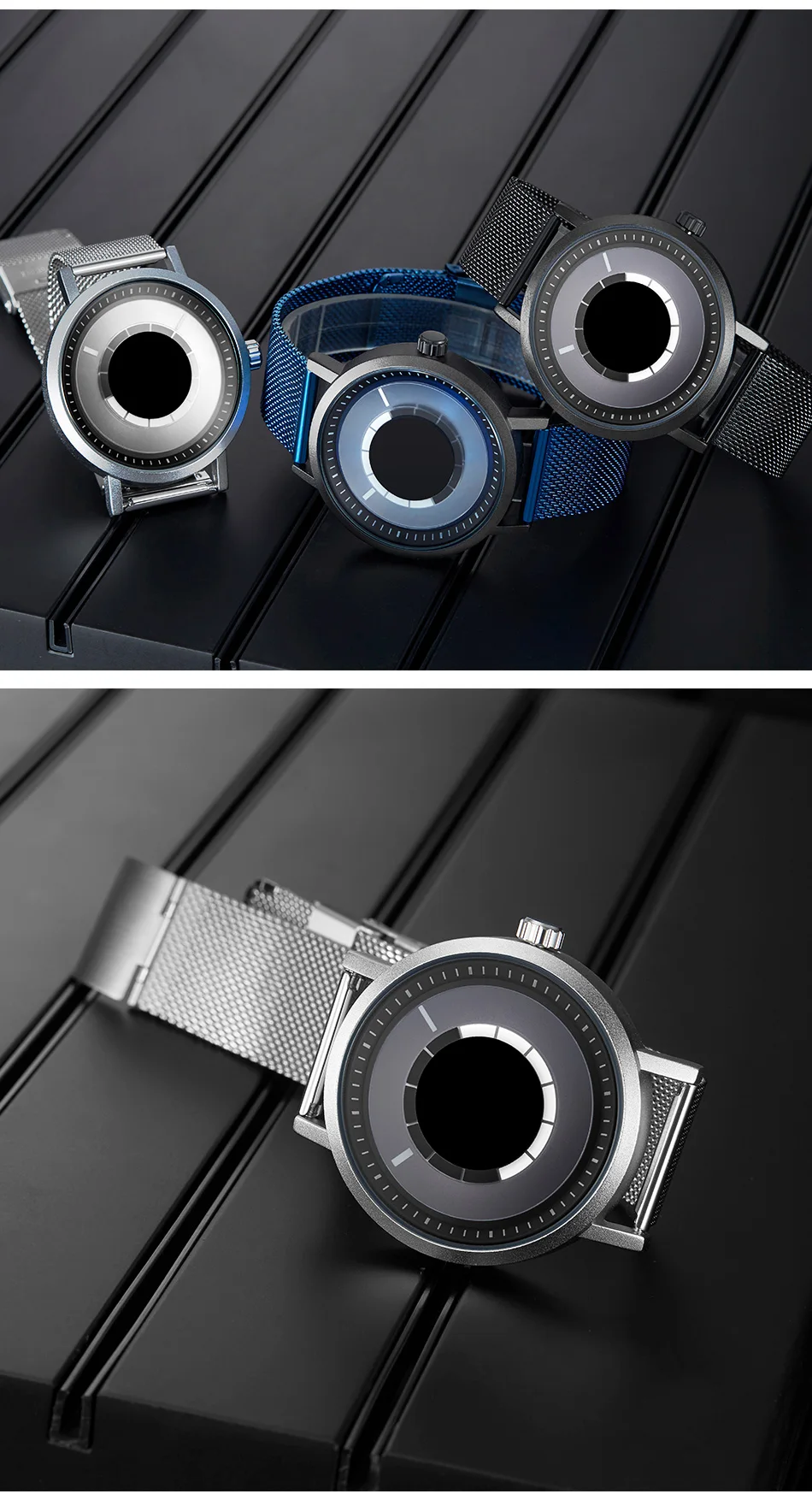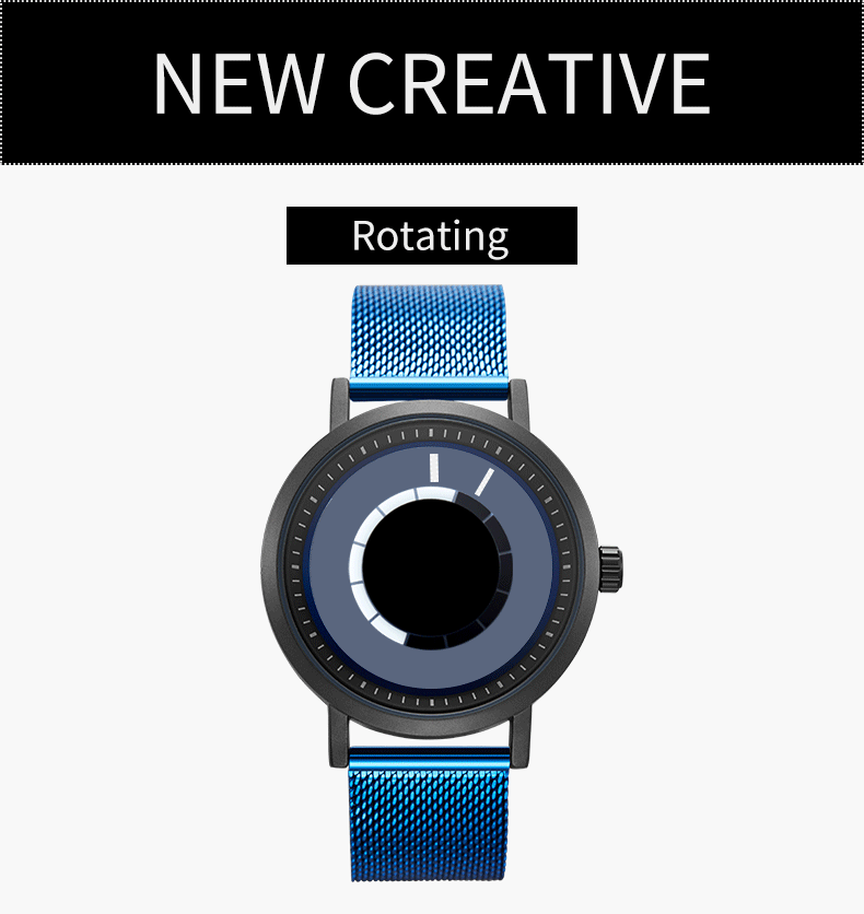 Новые уникальные креативные часы Sinobi с вращением, Мужские кварцевые наручные часы со стальным сетчатым браслетом, Спортивные Повседневные синие мужские часы, мужские часы