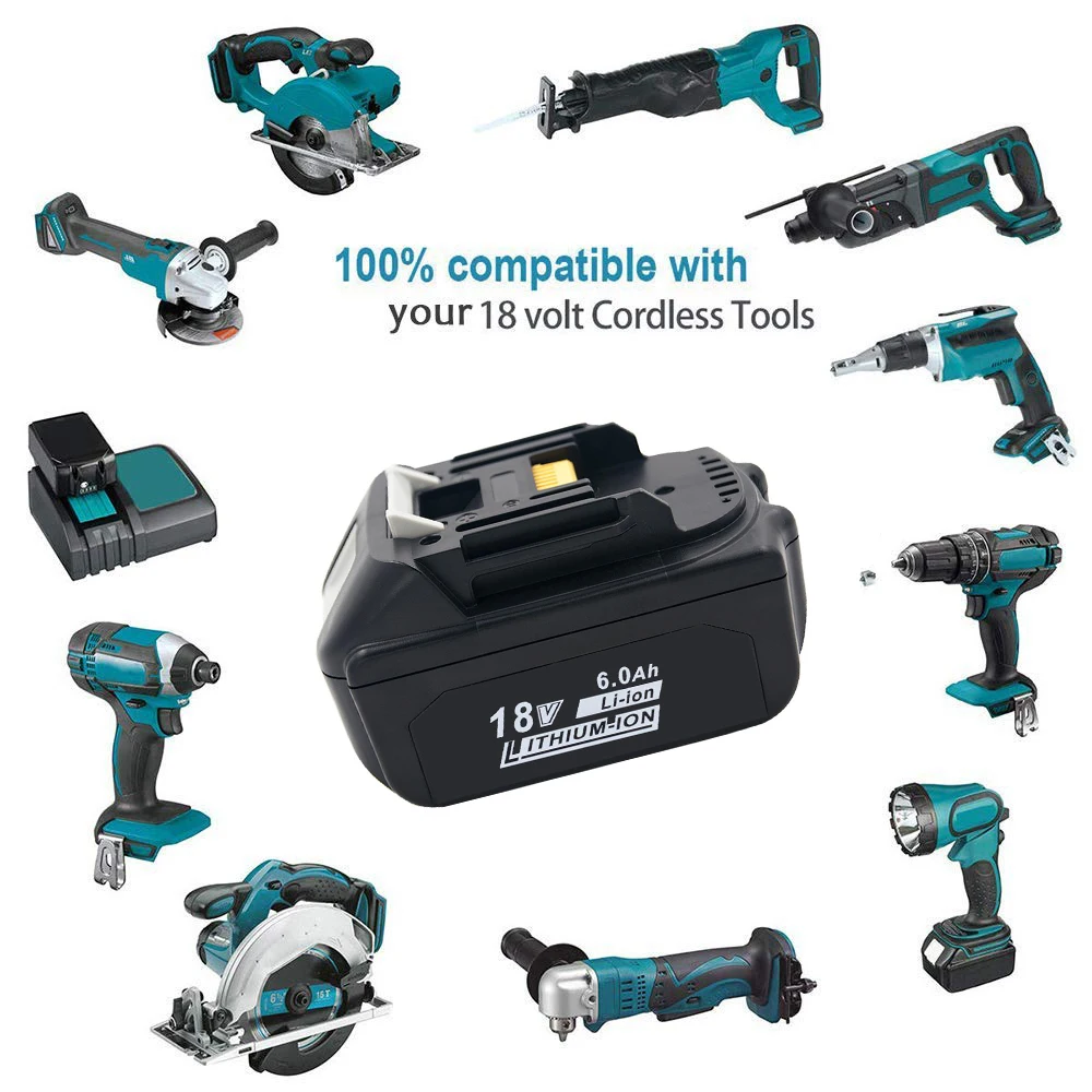 Аккумуляторная батарея 18 в, 6000 Ач, мАч, литий-ионная аккумуляторная батарея для электроинструмента Makita BL1850, BL1860B, BL1830