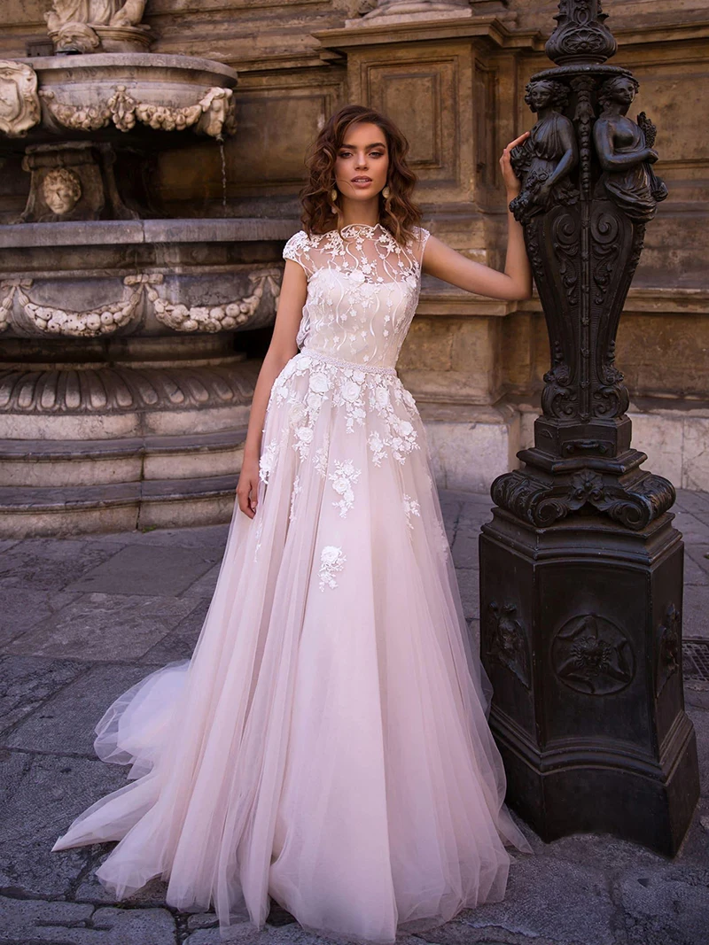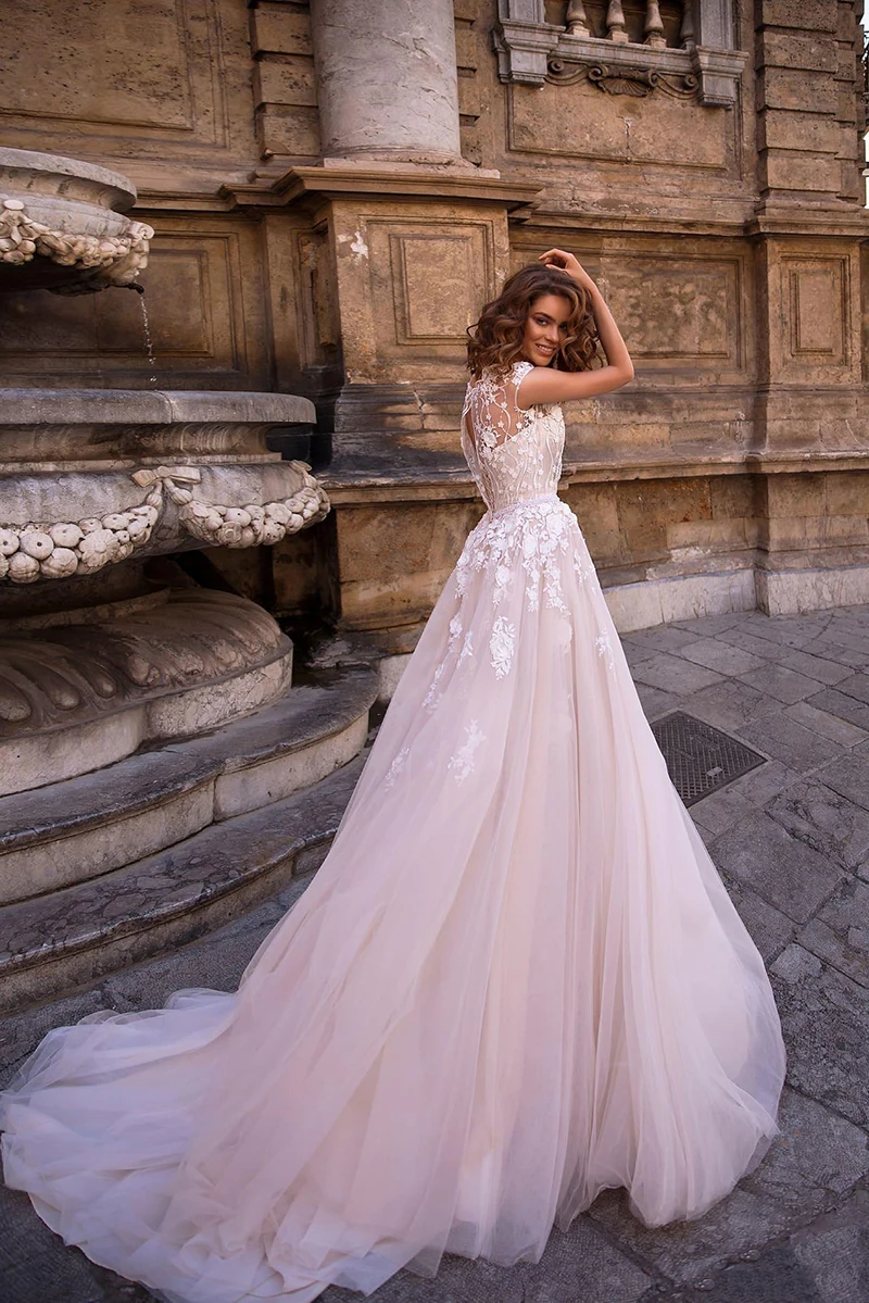 Свадебное платье принцессы LORIE, кружевное платье-трапеция с аппли...