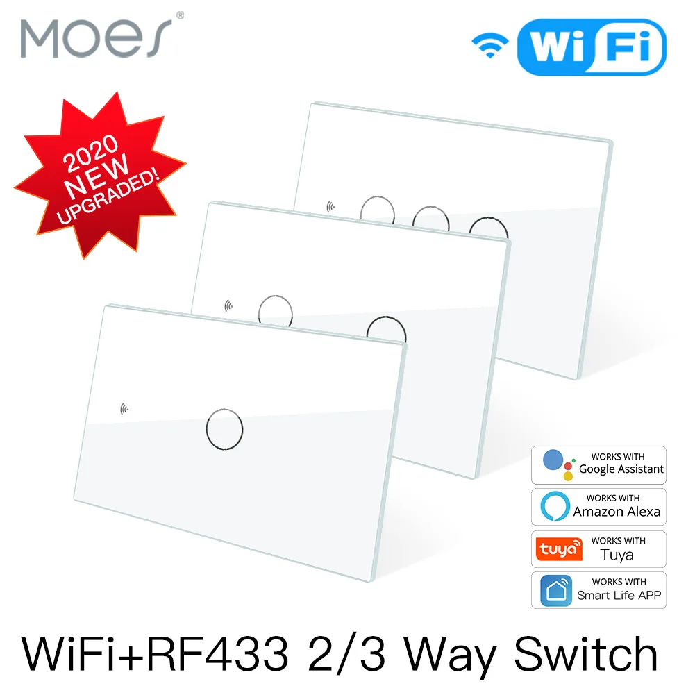 WiFi настенный сенсорный смарт-светильник, переключатель RF беспроводной смарт-жизни/Tuya Muilti-Control Association App релейный статус и светильник подсветки выключение дистанционного управления работает с Alexa,Google Home 1/2/3 Gang Изготовитель: Moes