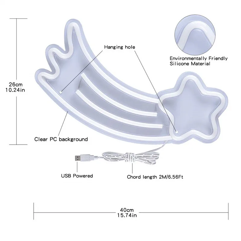 Неоновый светодиодный светильник Meteor s, вечерние неоновые вывески, настенный подвесной светильник для магазина, окна, художественные стены, Рождественский Декор, цветная неоновая лампа с питанием от USB