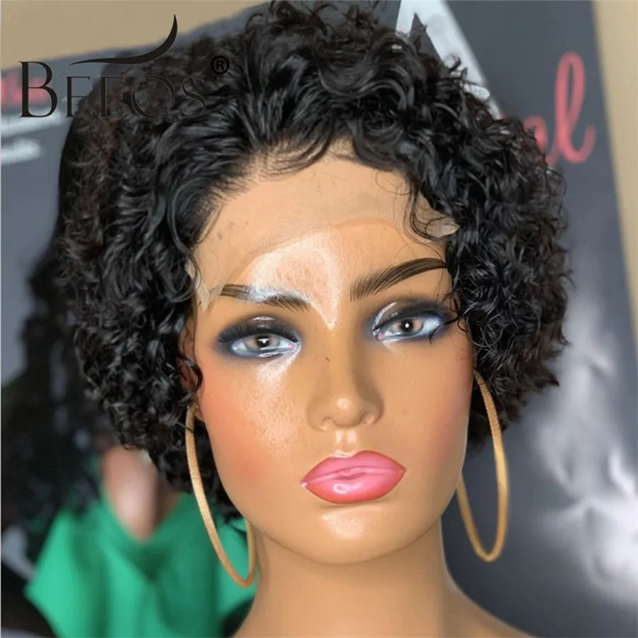 250% Короткие вьющиеся парики Beeos с вырезами фея, 13x 4, парики из человеческих волос на сетке спереди, бразильские волосы Remy 4x4 с застежкой на сетке, человеческие волосы с предварительным выщипыванием
