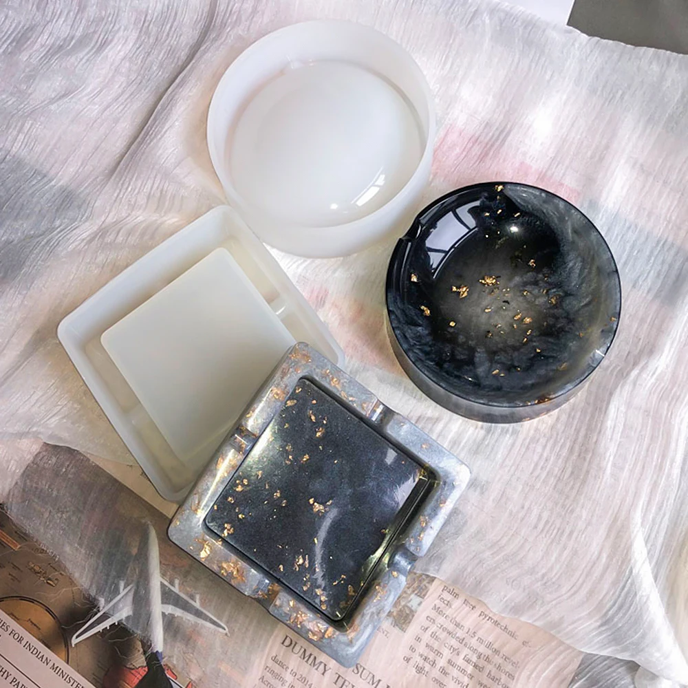 Прозрачная зеркальная настольная самодельная пепельница из смолы Прозрачная силиконовая форма ручная работа форма квадратныйкруглый контейнер