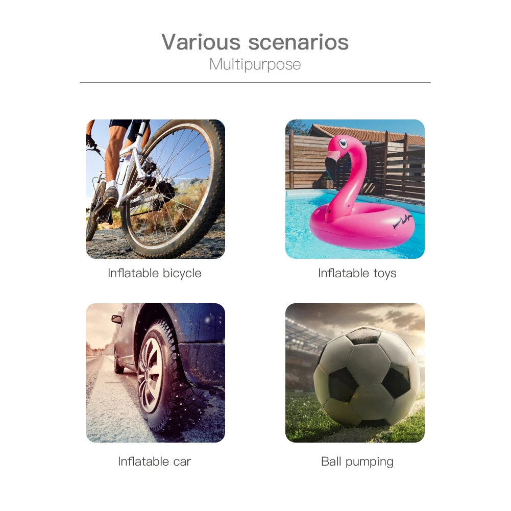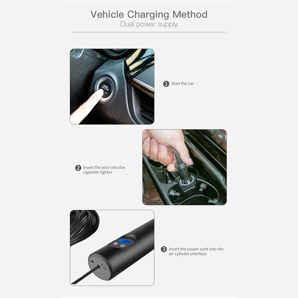 2020 Модернизированная версия насоса, встроенный литиевый аккумулятор 6000 мАч: мини-корпус, сверхбольшая емкость, 6000 мАч. Перезаряжаемый воздушный компрессор можно заряжать в аварийной ситуации. Зарядка через настроенный Micro USB (Примечание: Пожалуйста, не запускайте насос, когда зарядное устройство USB находится в зарядном состоянии); Автомобильное зарядное устройство может напрямую питаться и не накачиваться во время зарядки. СВЕТОДИОДНЫЙ цифровой манометр с подсветкой: четыре единицы переключения PSI / BAR / KPA / KG / CM. Вы можете установить давление в шинах в соответствии с потребностями шин и испытать давление в шинах в любое время. Когда надувание достигнет заданного значения, воздушный насос автоматически остановит надувание, что поможет избежать чрезмерного надувания. Суперъяркий светодиодный фонарик: шесть высокоглянцевых бусин в темноте, воздушный насос оснащен высокоглянцевым COB, чтобы удовлетворить ваши неотложные потребности. Цифровой ЖК-дисплей имеет подсветку, что удобно для чтения цифр ночью. Защита от низкого напряжения: встроенное устройство защиты аккумулятора. Когда напряжение слишком низкое, он автоматически отключит питание, и аккумулятор не будет чрезмерно разряжен в течение длительного времени. Максимальное давление надувания составляет 150 фунтов на кв. дюйм, подходит для автомобильных велосипедов, мотоциклов, мячей, плавательных колец, надувных игрушек и других надувных игрушек. Миниатюры занимают мало места: компактный миниатюрный миниатюр Советы: Пожалуйста, внимательно прочтите инструкцию перед использованием!