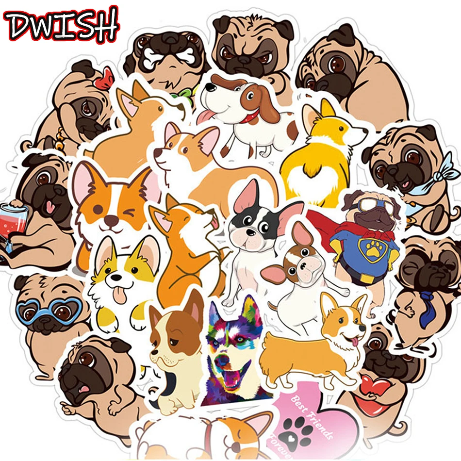 Наклейки ПВХ с изображением собаки корги Шарпея, скейтборда, гитары, ноутбука, багажа, автомобиля, забавные граффити, игрушки, 103050 шт. в упаковке