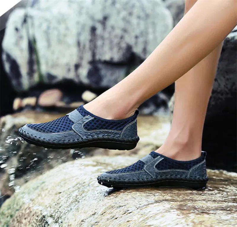 Мужские летние дышащие сетчатые туфли, повседневные кожаные кроссов...