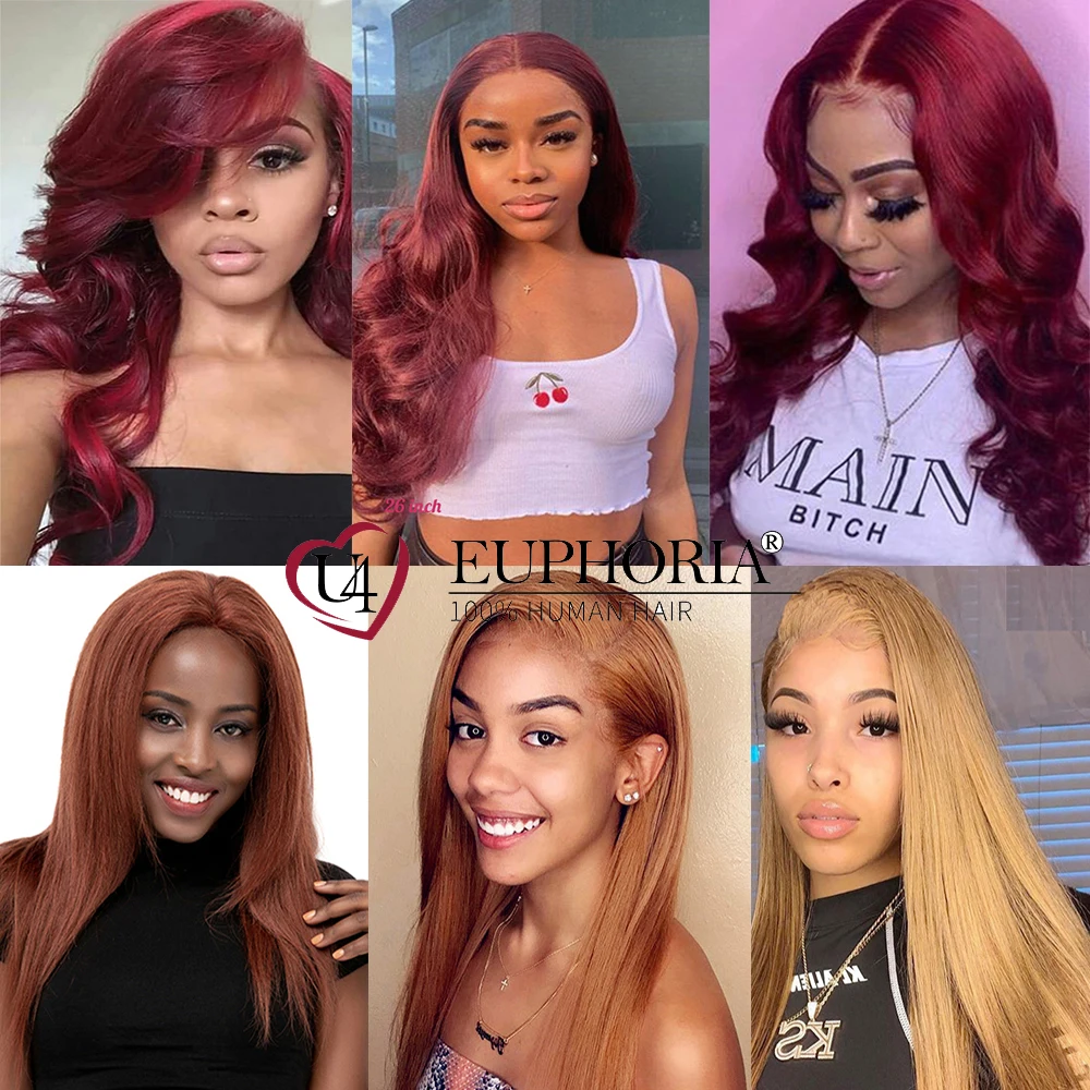 Волнистые человеческие волосы, пряди, блонд, красный, 99J Бург 613, средний коричневый, бразильские волосы Remy, пряди, 8-26 дюймов, 1 шт., Euphoria