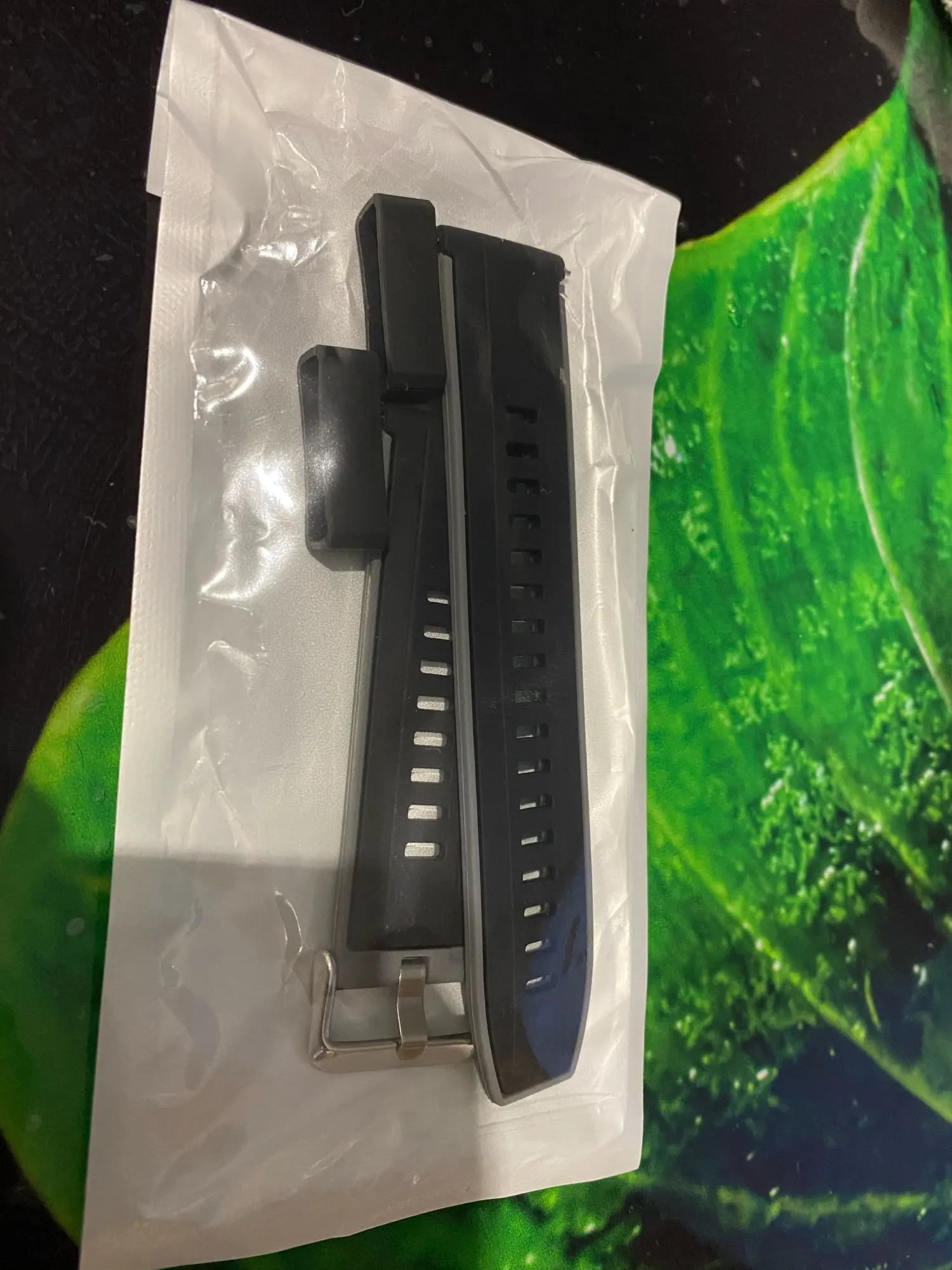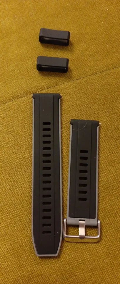 Отличный ремешок, Более упругий по сравнению с тем, что шел в комплекте с часами (Honor Magic). В упаковке было 2 резиновых фиксатора ремешка, что меня крайне обрадовало. Заказ пришел очень быстро.