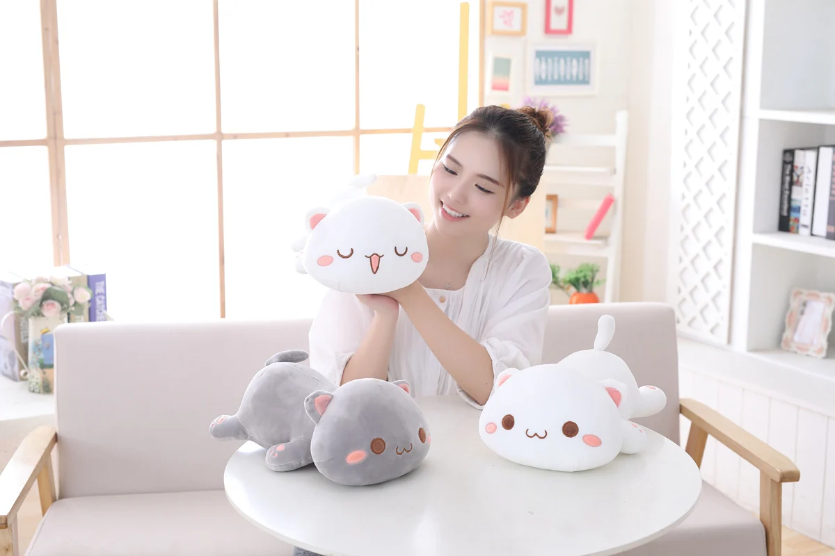 Kawaii Лежащая кошка, плюшевые игрушки, кот, чучело, милый кот, кукла, милая Подушка, мягкие Мультяшные игрушки для детей, девочек, рождественский подарок