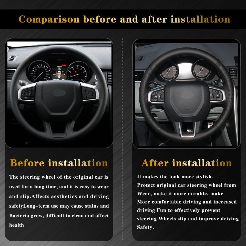 Черная Нескользящая искусственная кожа HKOA, ручная работа, чехол рулевого колеса автомобиля, для Land Rover Discovery Sport 2017, 2016, 2015