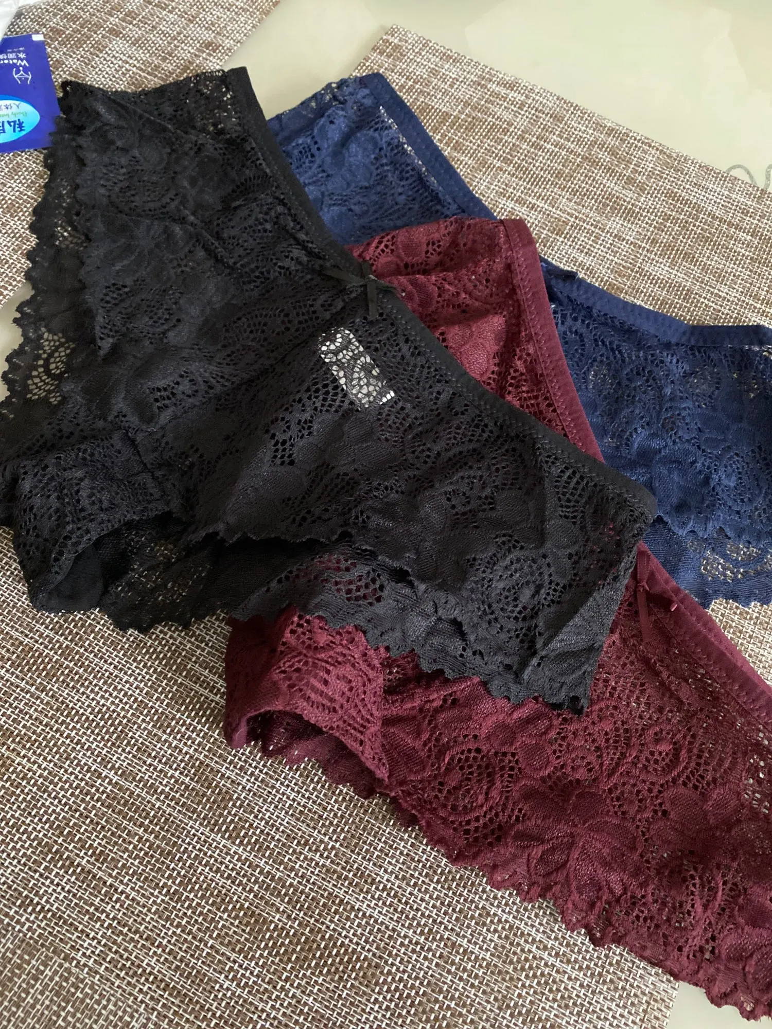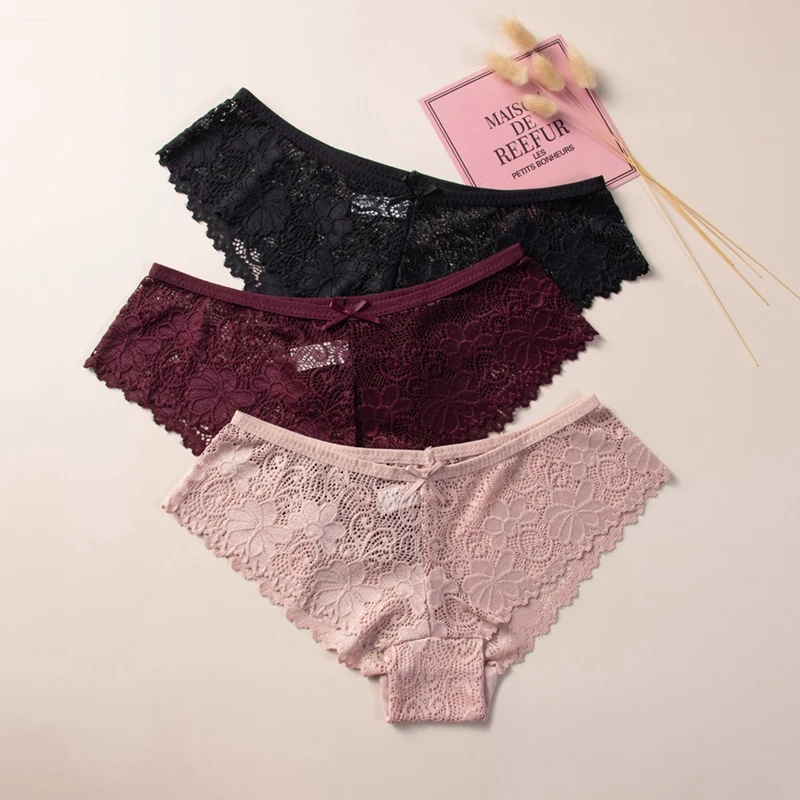 Трусы женские кружевные Бесшовные прозрачные, 3 шт.