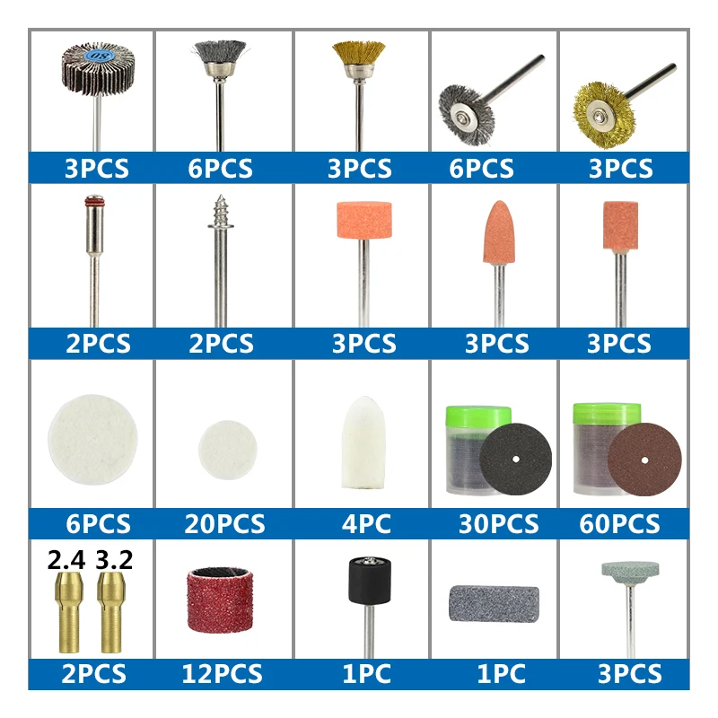 5. Эти электрические наборы для полировки имеют шлифовальную пасту, шлифовальный камень, наждачную бумагу, шлифовальный круг, полировальную пасту, нейлоновую щетку, стальную проволочную щетку, сверлильные Шатуны и т. д.