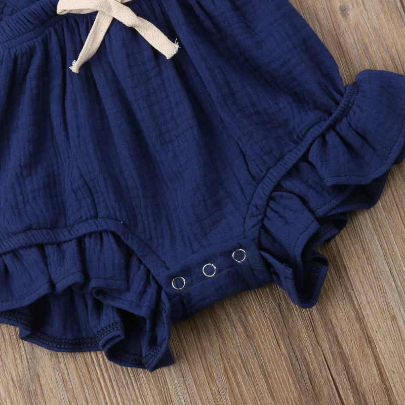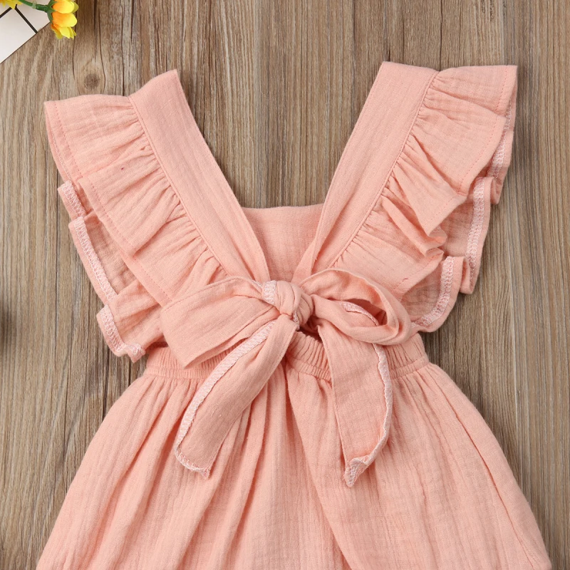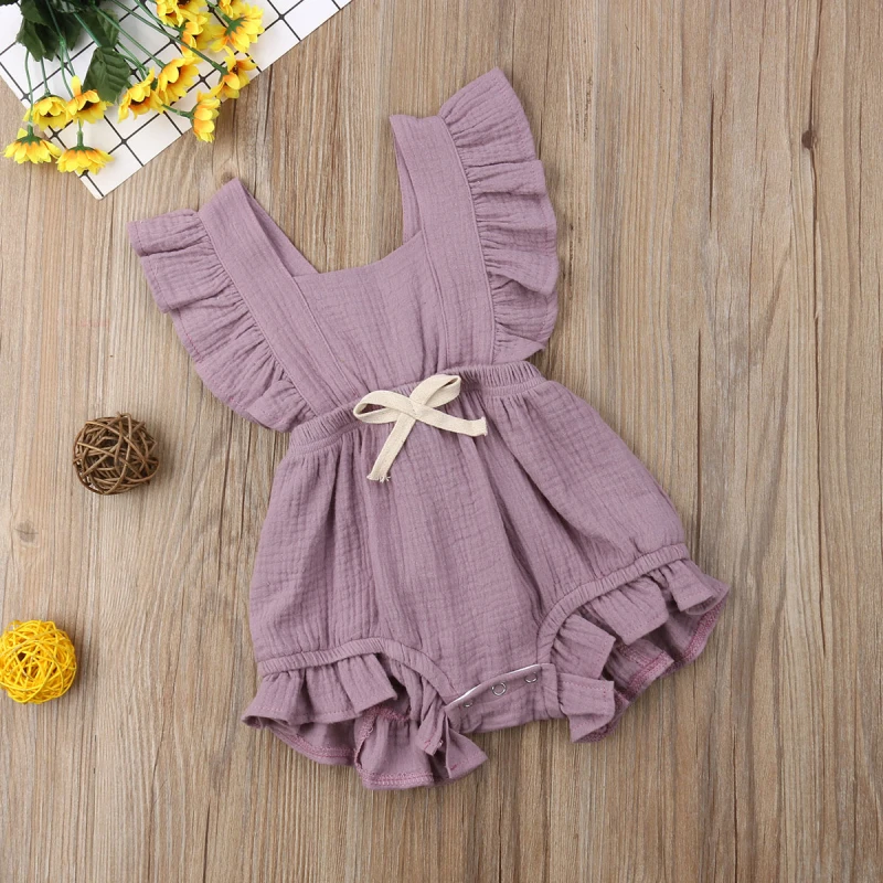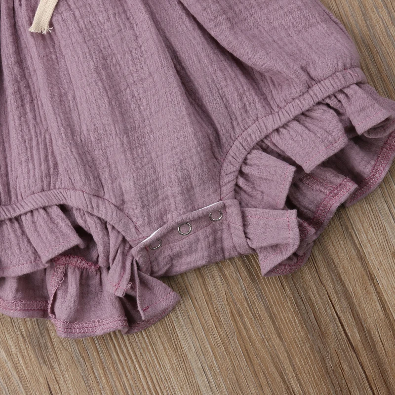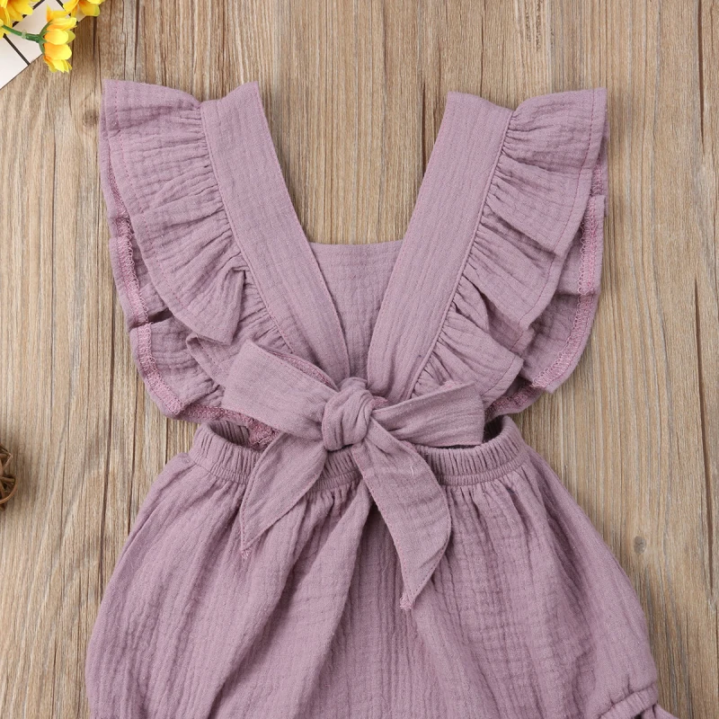 Комбинезон детский с оборками, однотонный хлопковый, льняной, летний