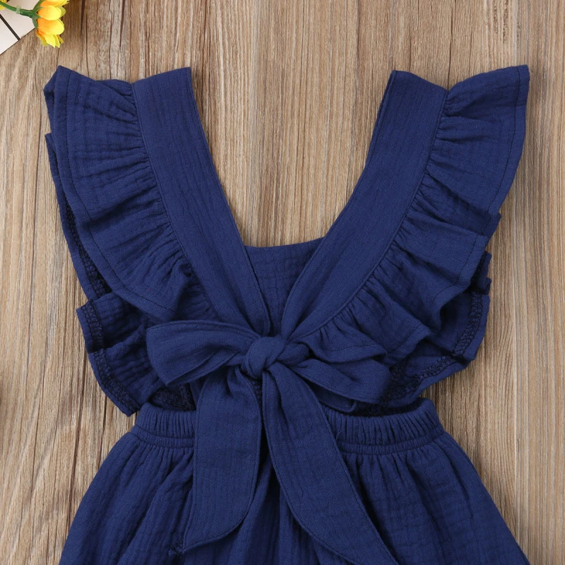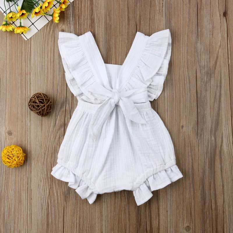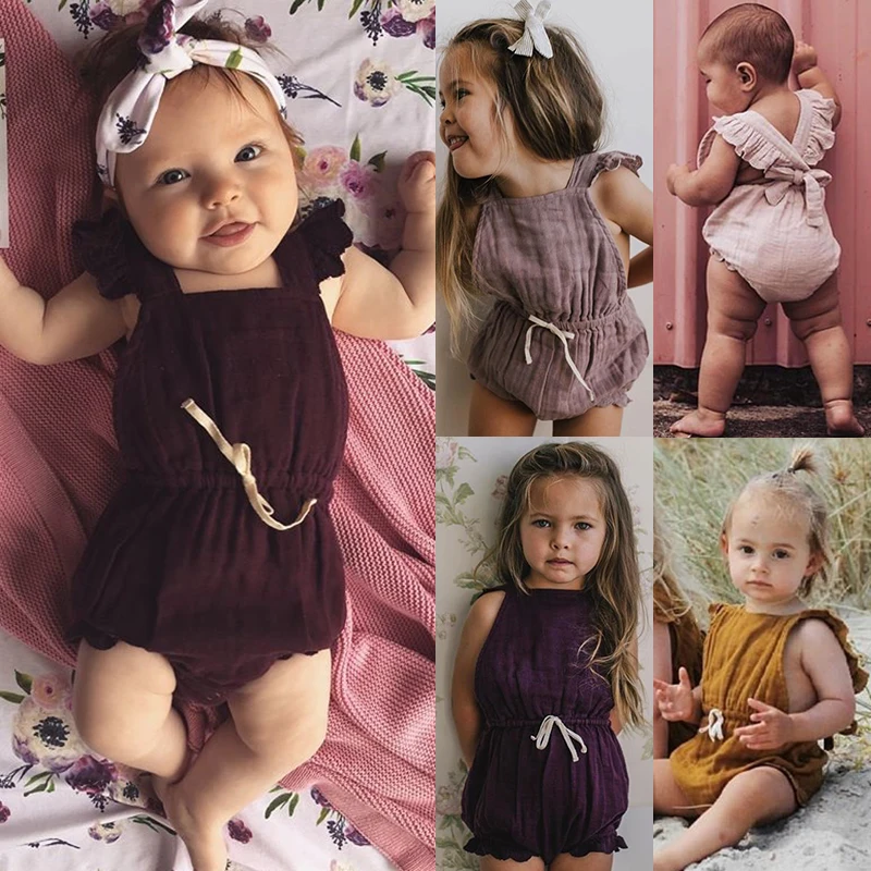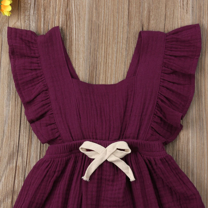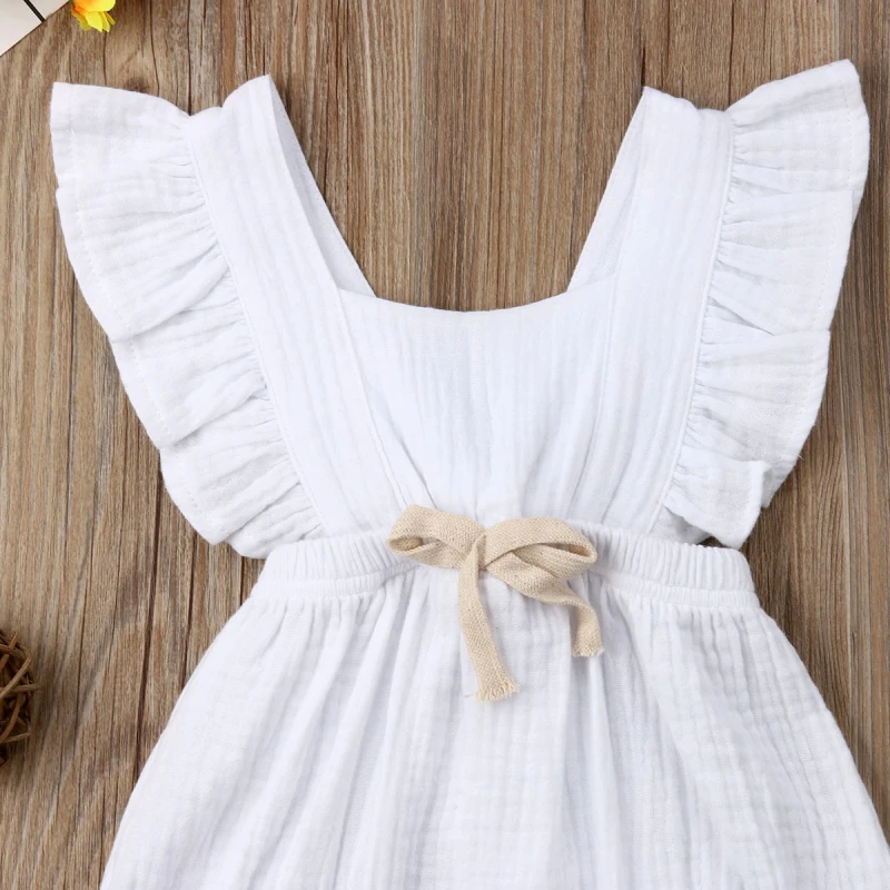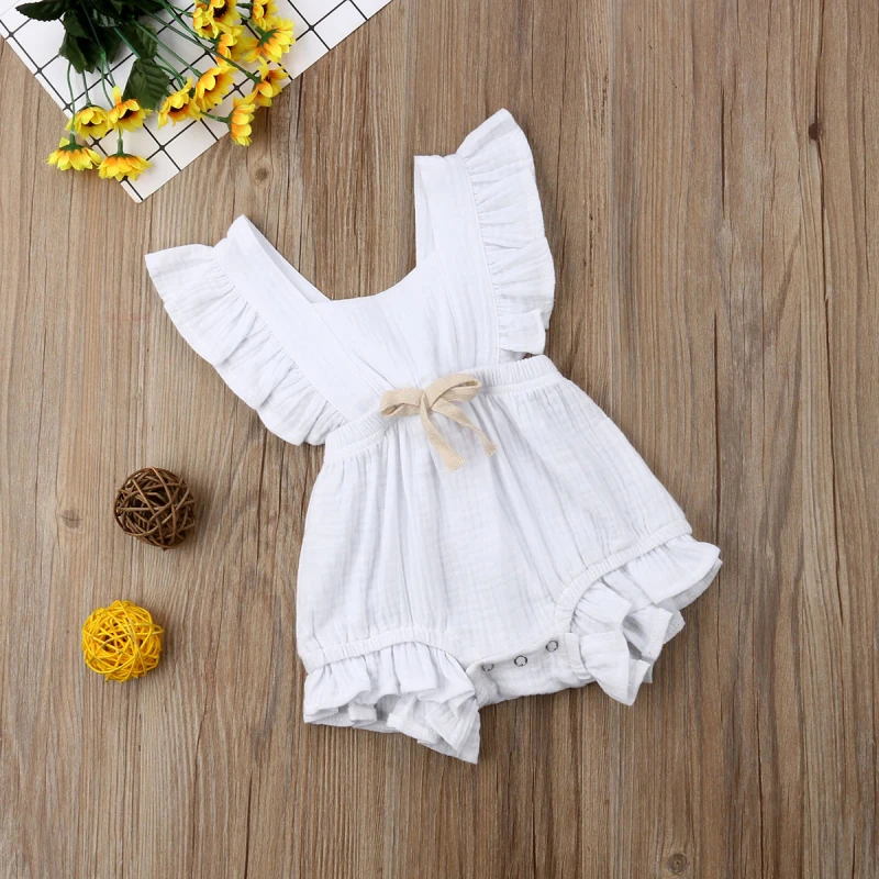 Комбинезон детский с оборками, однотонный хлопковый, льняной, летний