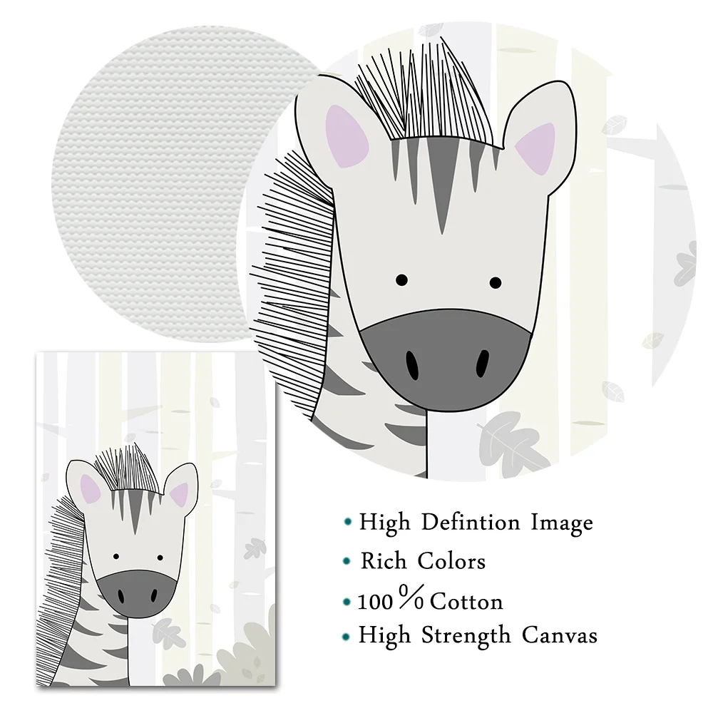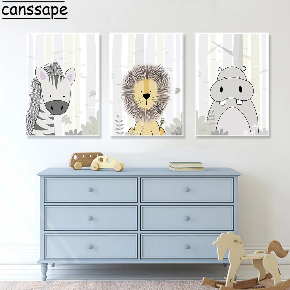 Рисунок Бегемот, Зебра, Лев, лес, животные, детская комната, холст, Постер в скандинавском стиле, настенные картины, декоративная картина для мальчиков и детей