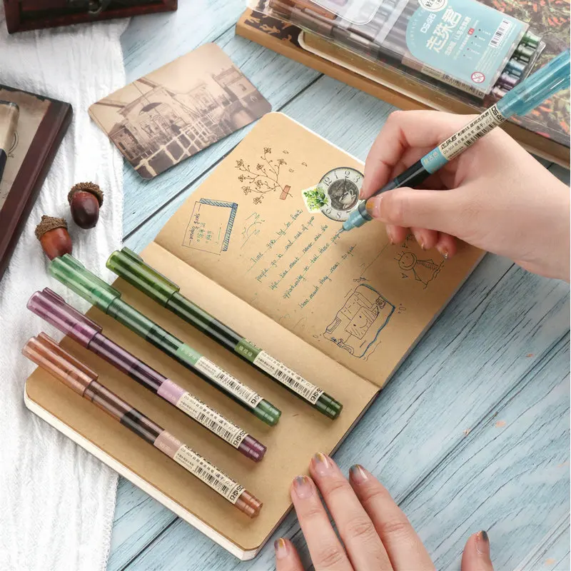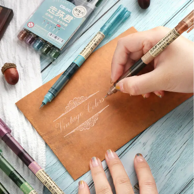 5 шт. Новинка Ретро стационарная 10 цветов винтажная гелевая ручка прямая жидкость 0,5 мм ширина линии Высокая емкость ручка для офисов и школ DS-904