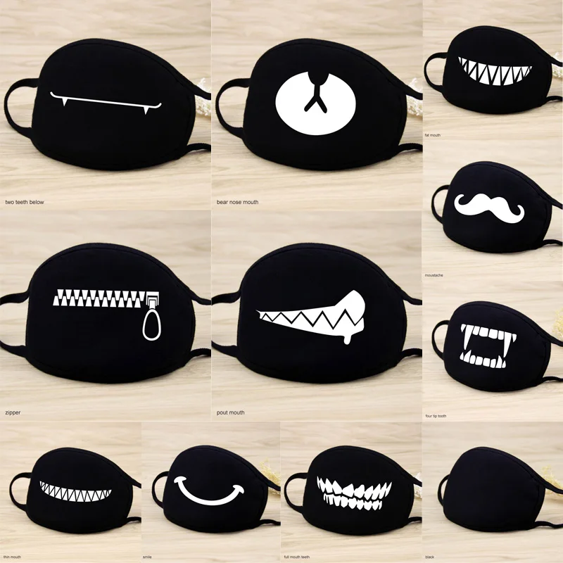 Маска с забавным принтом, стирающаяся, ветрозащитная, черная, #2021