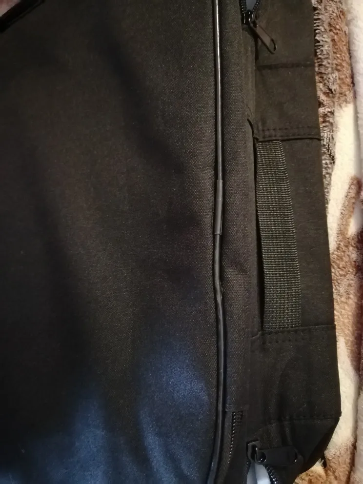 Доставка в пункт выдачи в Спб одну неделю. На покрытии есть небольшой дефект, но т.к сумка спрятана от посторонних глаз, то это не критично. Сначала расстроился , когда развернул сумку и увидел габариты, но потом линейкой померил и оказалось все правильно. В общем 15 см нормальный размер, и речь не только про сумку.