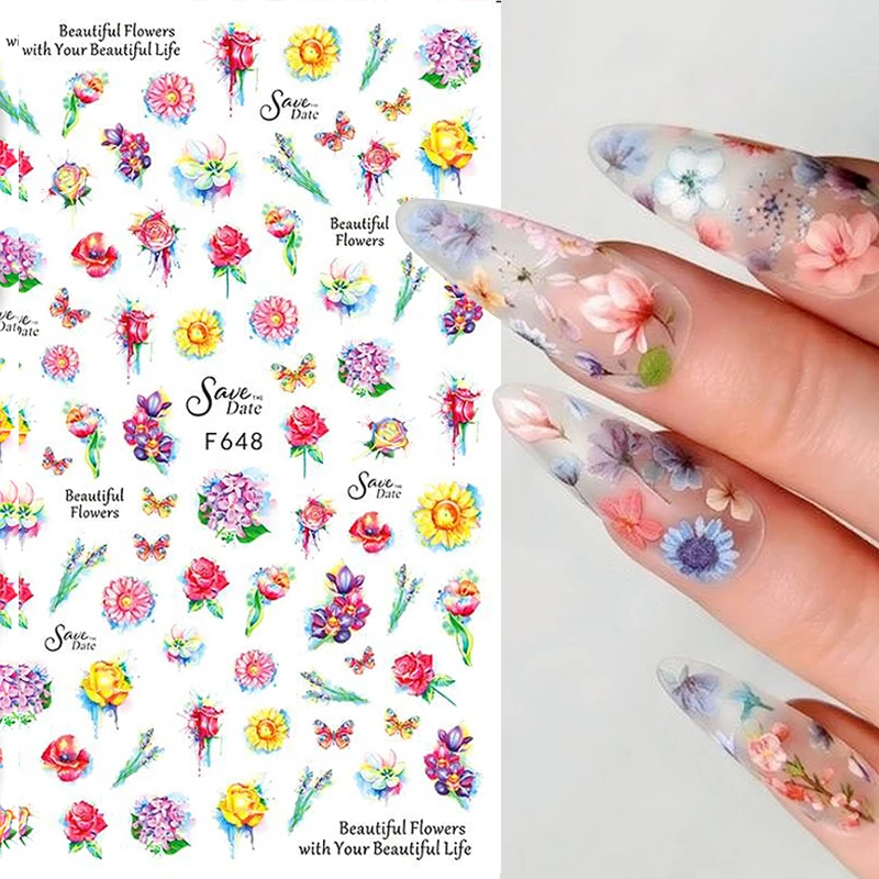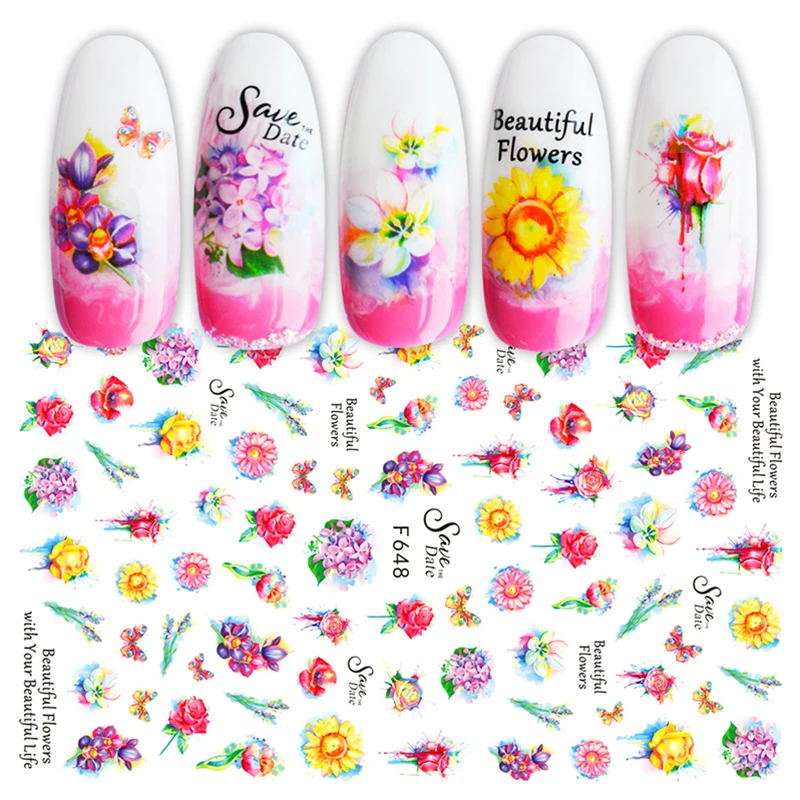 1 лист 3D наклеек для ногтей серия цветов Переводные прекрасные наклейки дизайн ногтей наклейки для дизайна ногтей украшения для ногтей