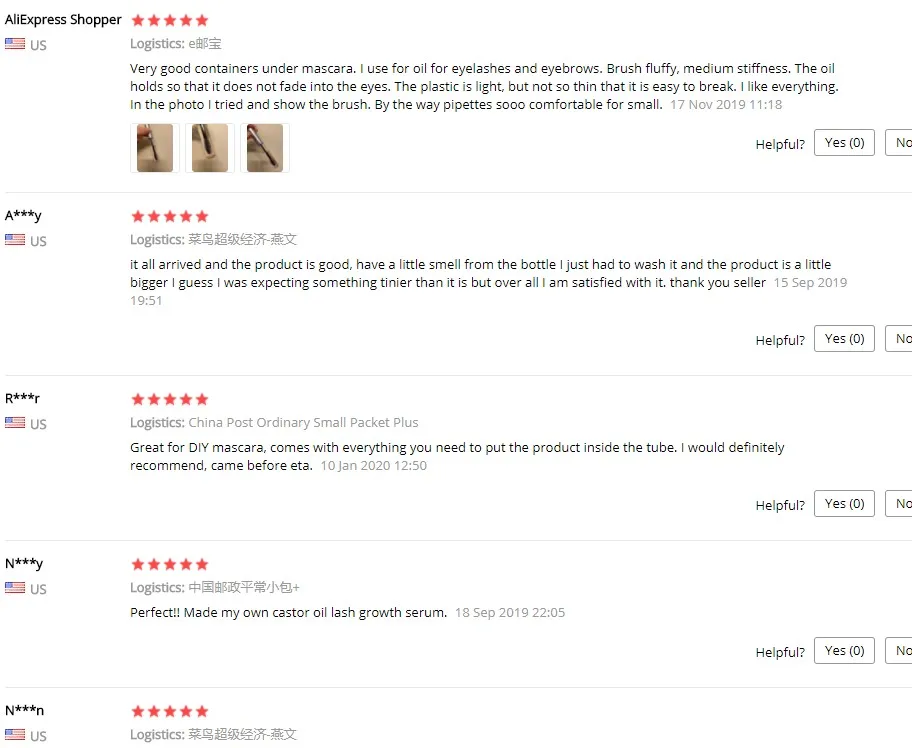 5 x пустой тюбик для туши с кисточкой 5 x воронки 5 x Переводные пипетки