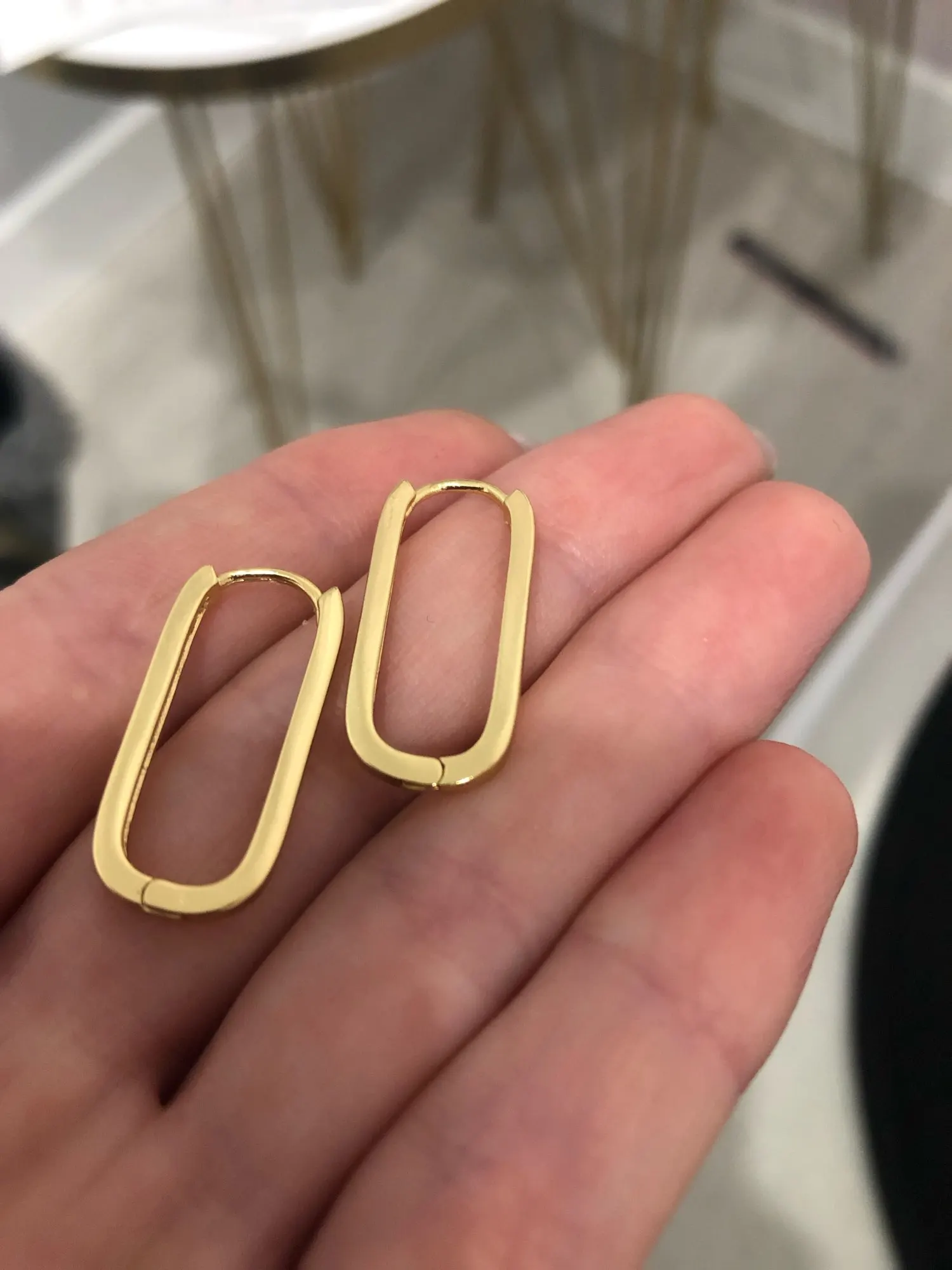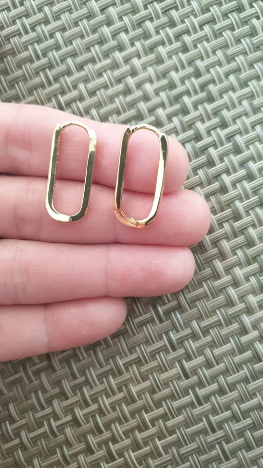 Серьги-кольца женские, с геометрической застежкой, золотого цвета, из металла, латуни, овальной формы, замок прямоугольной формы