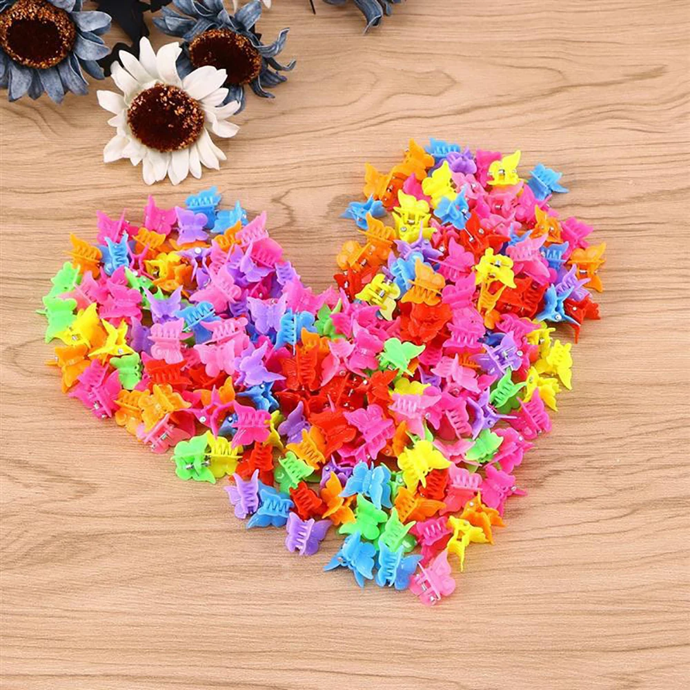 100 шт. цветные яркие заколки для волос в форме бабочки, мини-зажим...