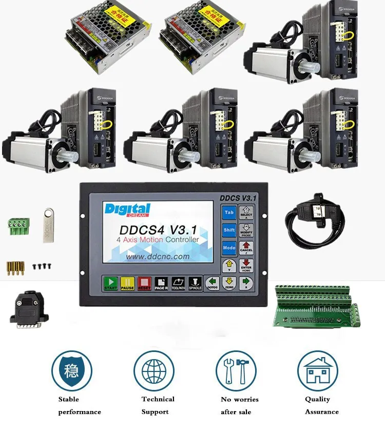 Четырехосевой комплект с ЧПУ, 1 * ddcsv3.1 Автономный контроллер с ЧПУ + 4*400 Вт AC серво-двигатель в комплекте z-ось с тормозом + 2*75 Вт источник питания