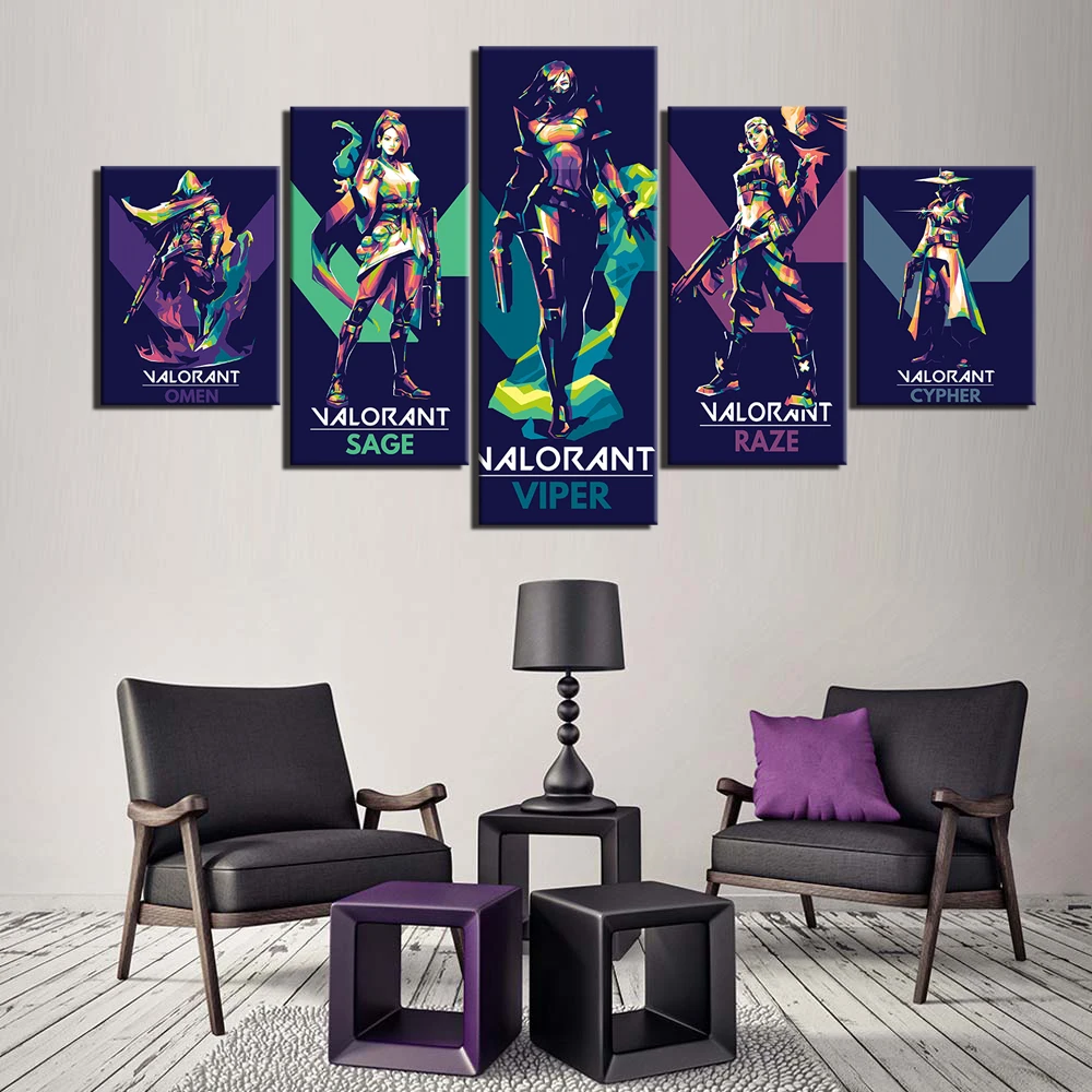 5 шт. валорант игровые постеры Omen шалфей Viper Raze Cypher картина маслом на холсте настенное искусство домашний декор Фоновые наклейки на стену