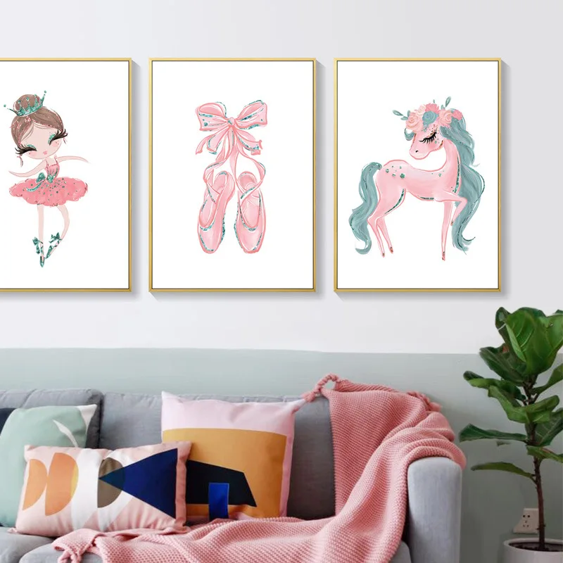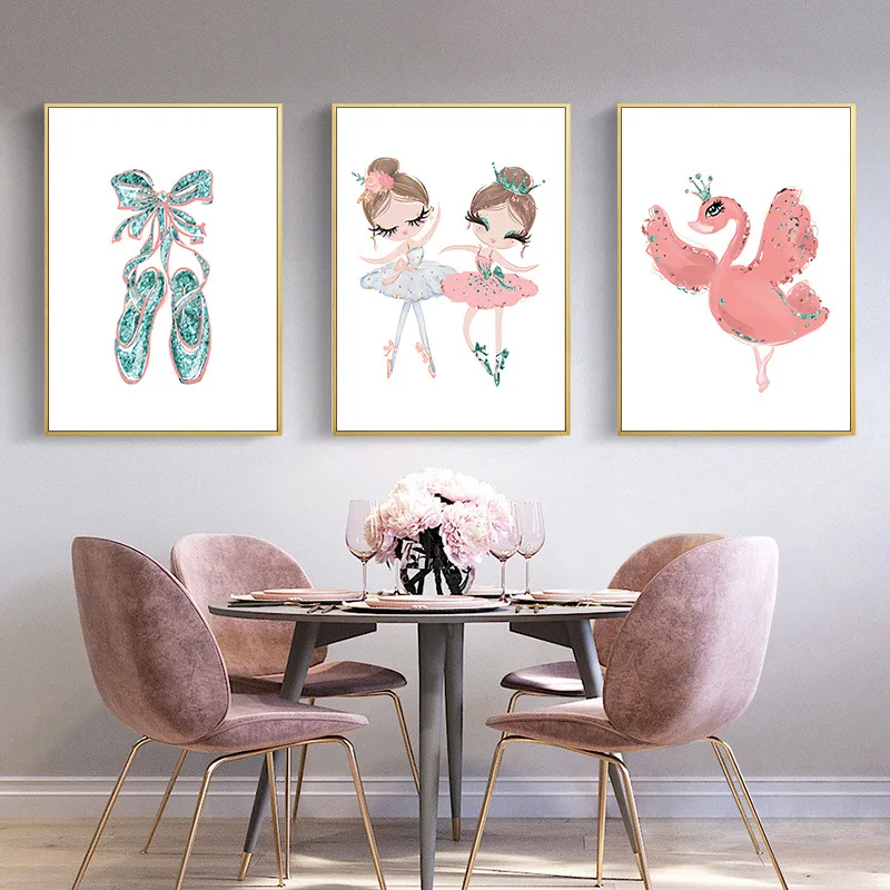 Скандинавская простая хипстерская мультяшная розовая танцевальная обувь для маленькой девочки Лебедь декоративная картина милое мультяшное украшение для комнаты девочки