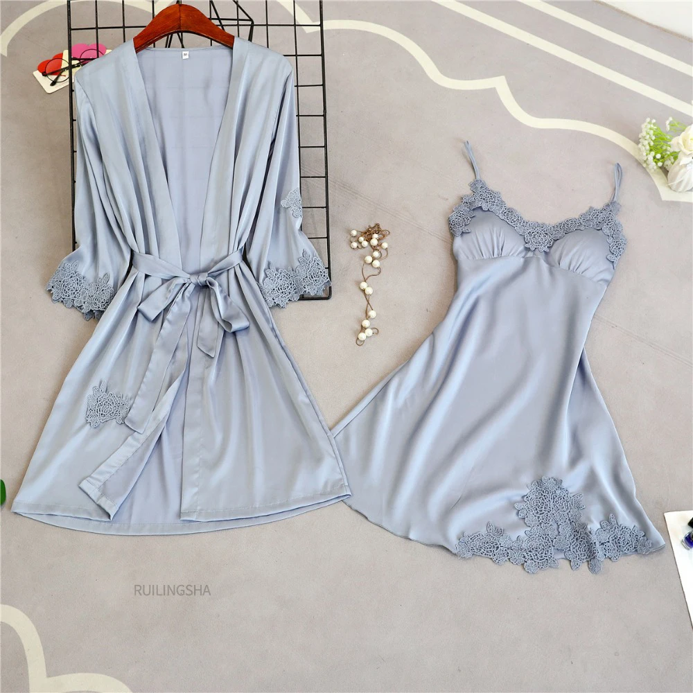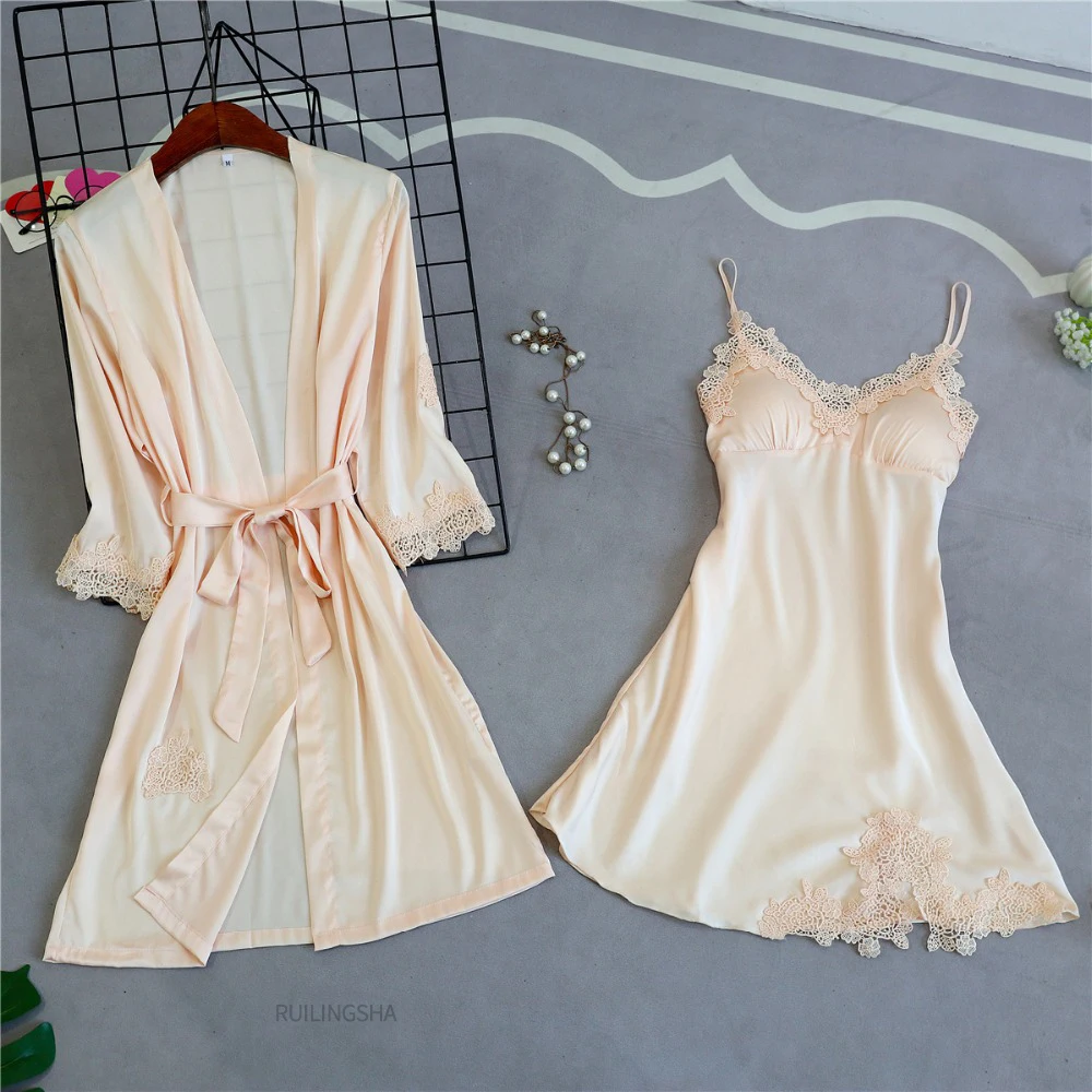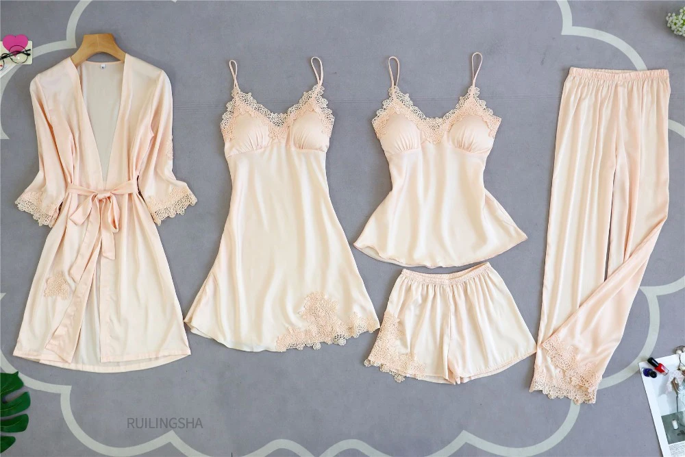 Женская атласная пижама, 5 шт., шелковая Домашняя одежда с вышивкой, Пижама для отдыха с грудными прокладками
