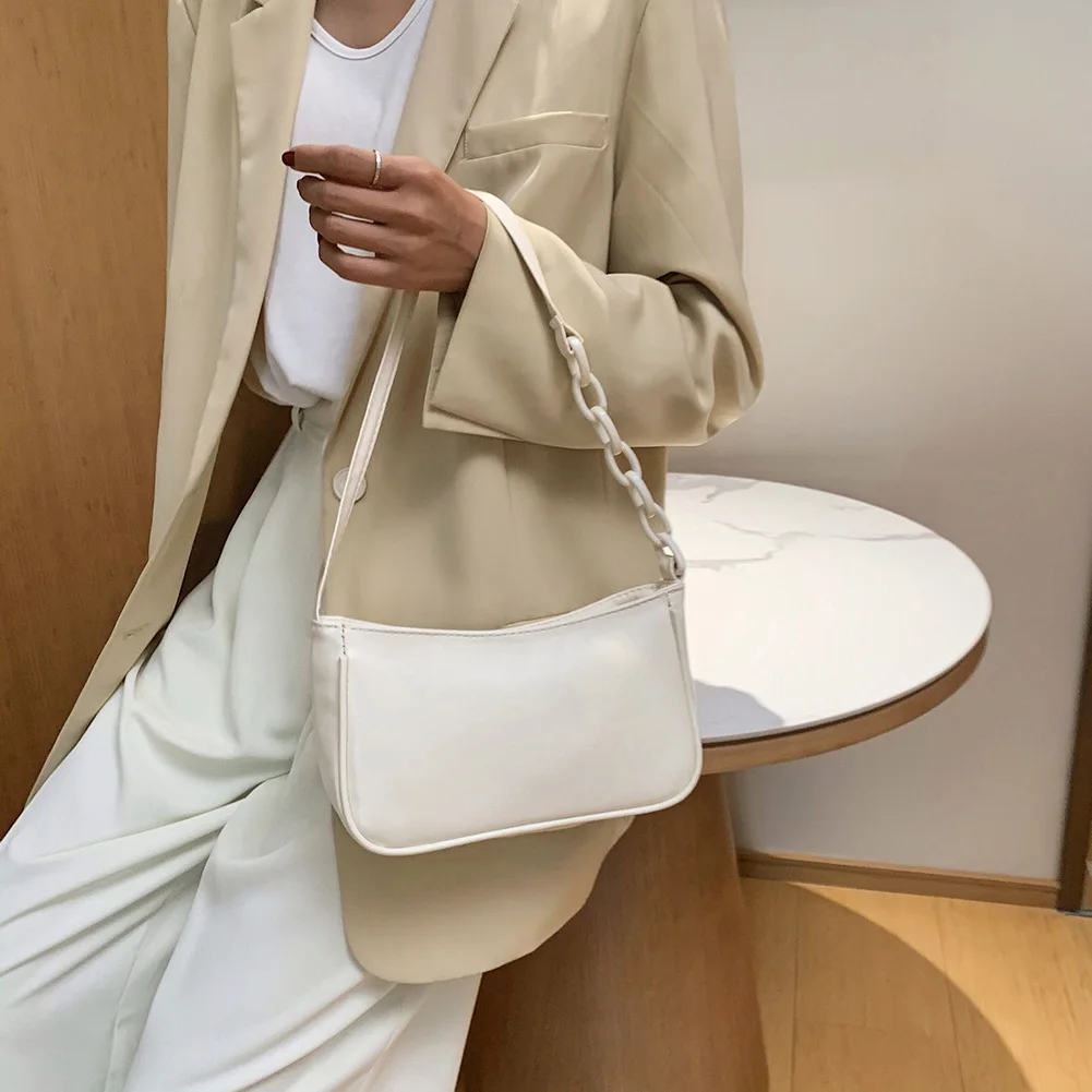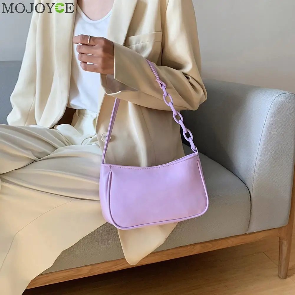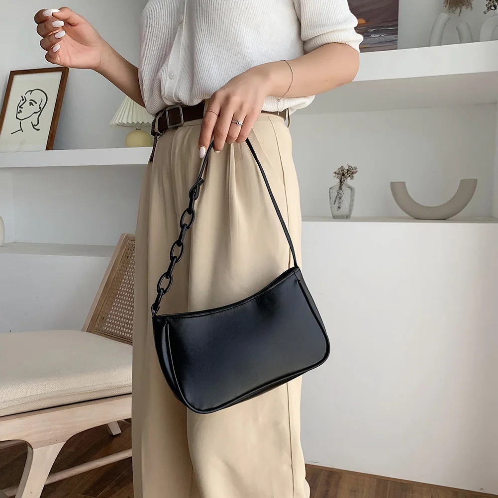 Женская кожаная однотонная сумка на цепочке, повседневная сумка-тоут через плечо в стиле ретро, модная Изысканная сумка для покупок