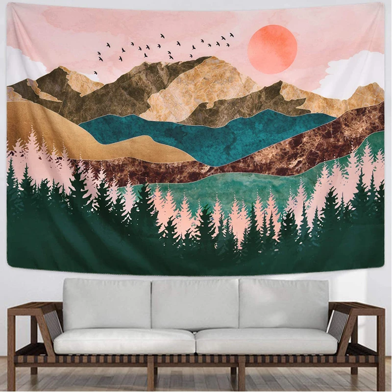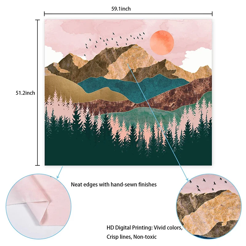 Какая замечательная художественная идея! Пики, леса, птицы и закаты образуют красивый и эффектный природный ландшафт. Этот гобелен будет идеальным подарком для любого использования в помещении и на открытом воздухе.