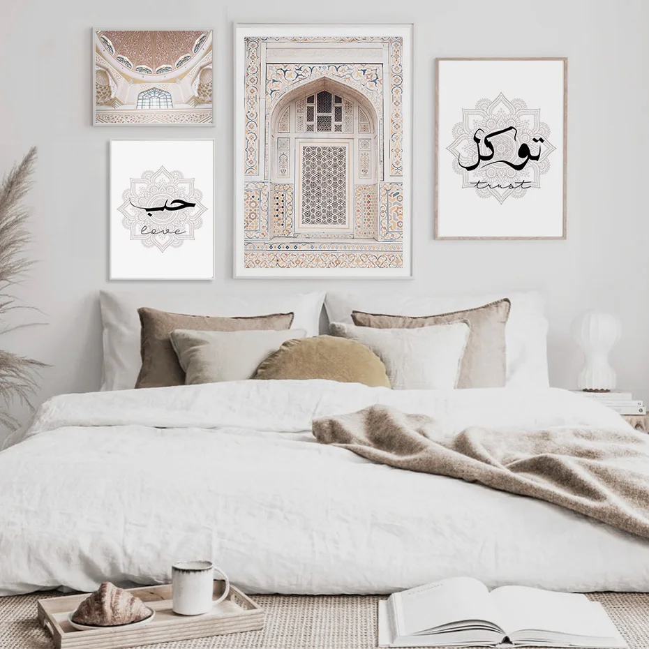 Исламская каллиграфия бежевый Мухаммед здание мира плакаты холст ка...