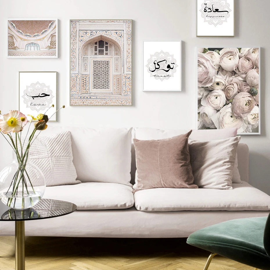 Современная розовая Цветочная мусульманская настенная Картина на хо...