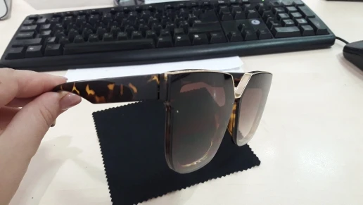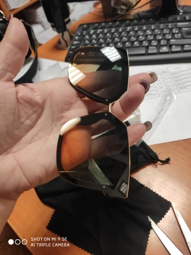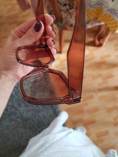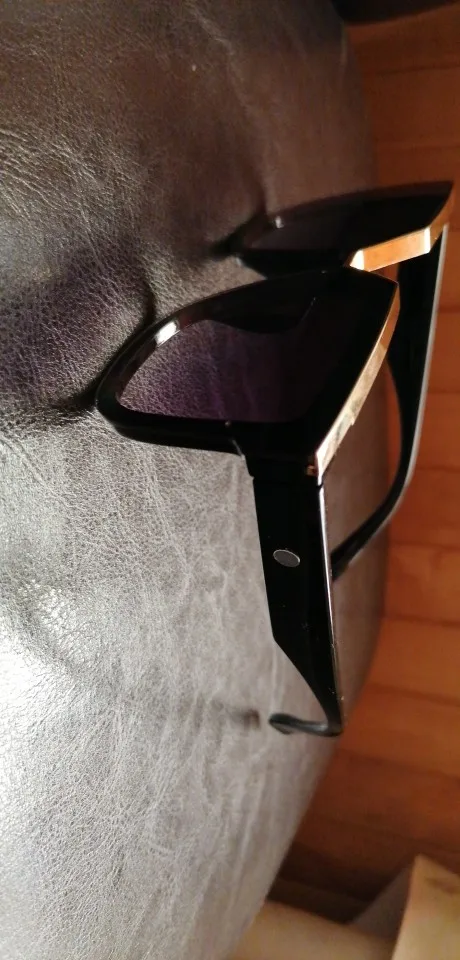 Симпатичные очки. Фото соответсвует реальности, цвет ежевичный, именно как ожидалось. Единственное, не фото продавца они явно сфотографированы под софитами, поэтому цвет ярче. Вживую же показывает немножко темнее и спокойнее. Прекрасно садятся на умеренно-крупное лицо прямоугольной формы. На маленькое лицо будут огромные, обращайте внимание на замеры. Пластик прочный, тяжеленький, не скрипит. Претензии есть к золотой металлической канве, у меня она с браком на переносице, как будто пятно от спайки. Также одна дужка была на пол сантиметра выше, но я легонько согнула в переносице и стало нормально. Но это все нюансы, ведь эти очки мне достались приблизительно за 1.8$, а за такую цену - грех придираться. Тем более, что все это будет заметно разве что при детальном осмотре, а не постороннему смотрящему. Да и носке не мешает. Так что к покупке непридирчивым рекомендую, продавец пакует аккуратно, отправляет быстро