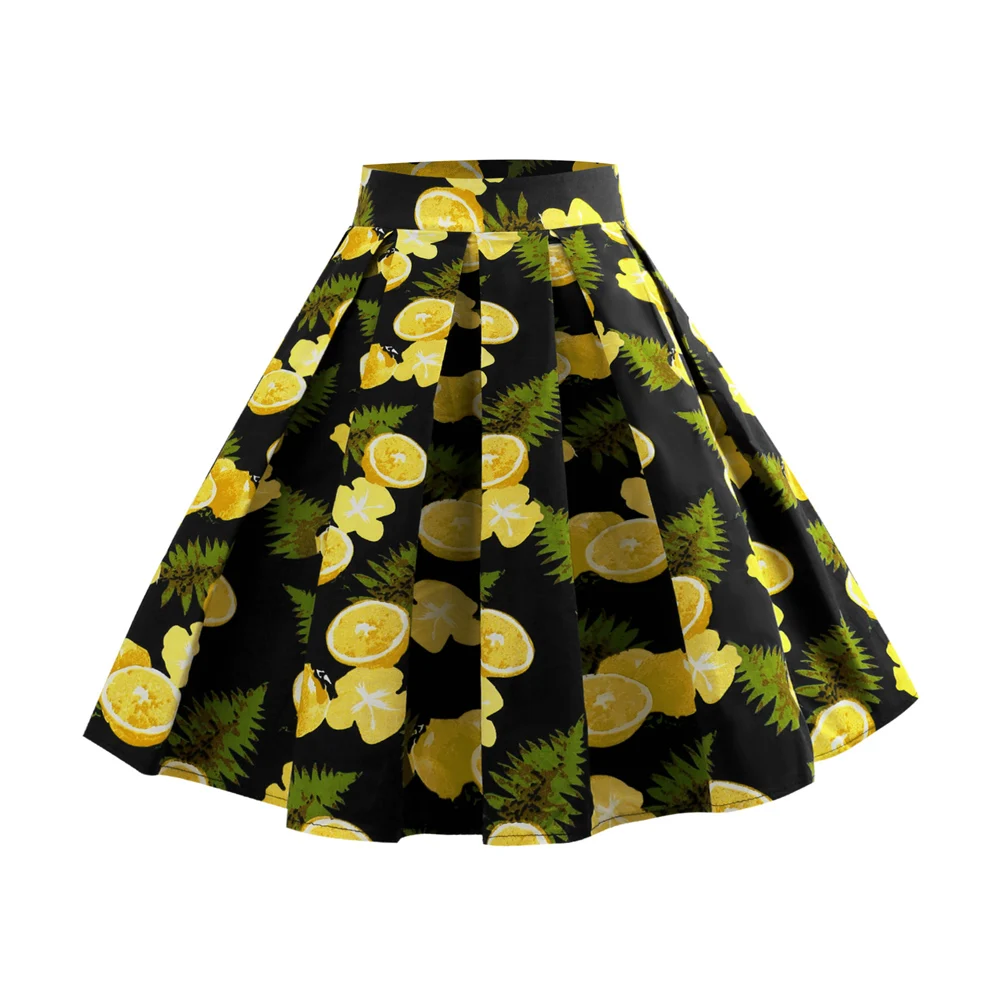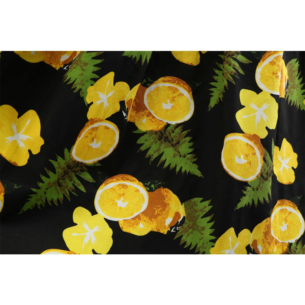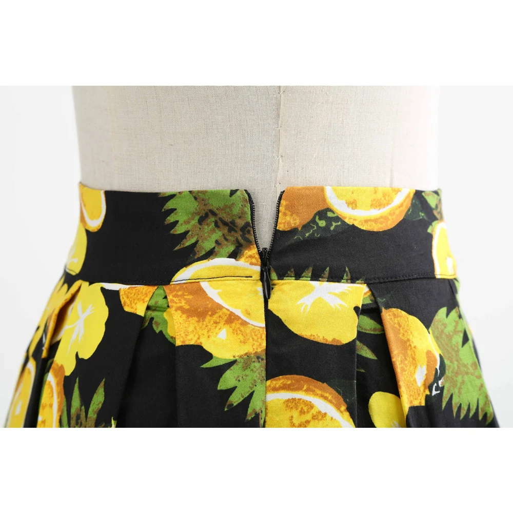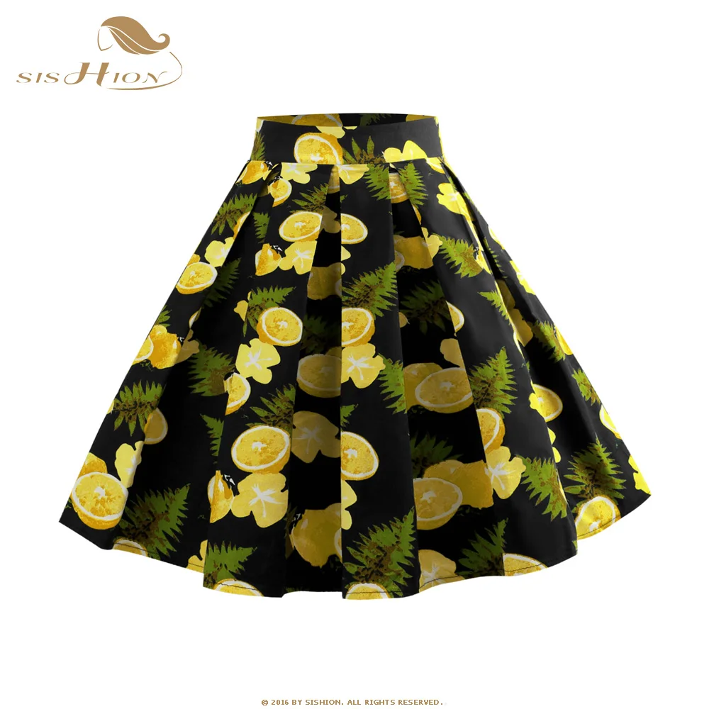 Женская хлопковая юбка с высокой талией SISHION, черная трапециевидная Винтажная летняя юбка с принтом лимона, SP1130, новинка 2021