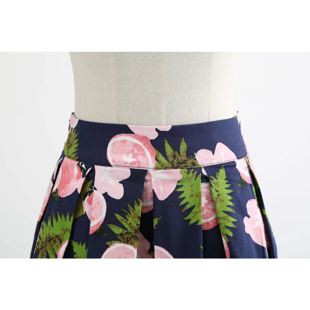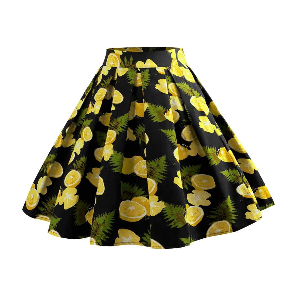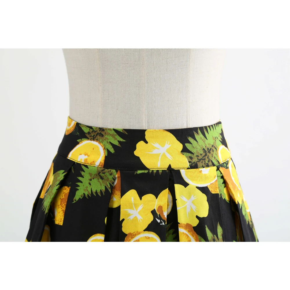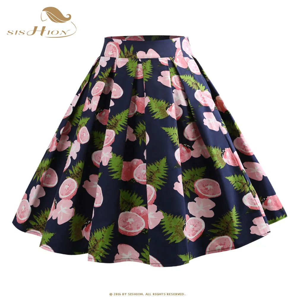 Женская хлопковая юбка с высокой талией SISHION, черная трапециевидная Винтажная летняя юбка с принтом лимона, SP1130, новинка 2021