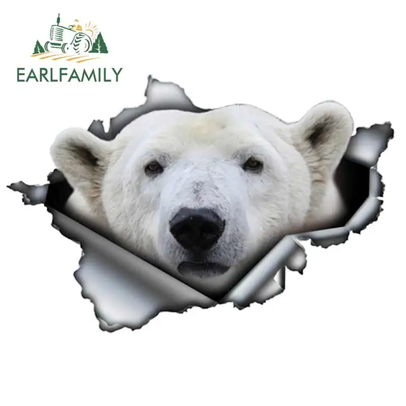 EARLFAMILY 13 см x 8,8 см Автомобильная наклейка с белым медведем, рваная металлическая наклейка, водонепроницаемая 3D белая зеркальная виниловая наклейка s