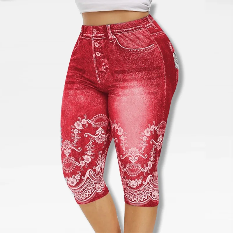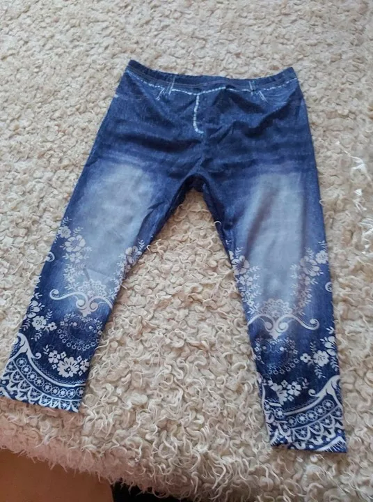 Женские джинсовые леггинсы, Леггинсы из искусственного денима с принтом, штаны-капри с высокой талией, Суперэластичные Джеггинсы размера плюс 5XL
