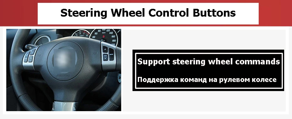 6:Управление рулевым колесом/Удаленный Адаптер рулевого колеса готов безопасно контролировать вашу музыку на ходу, с этой функцией, вы можете пристально фокусироваться прямо впереди, что сделает вождение более безопасным.
