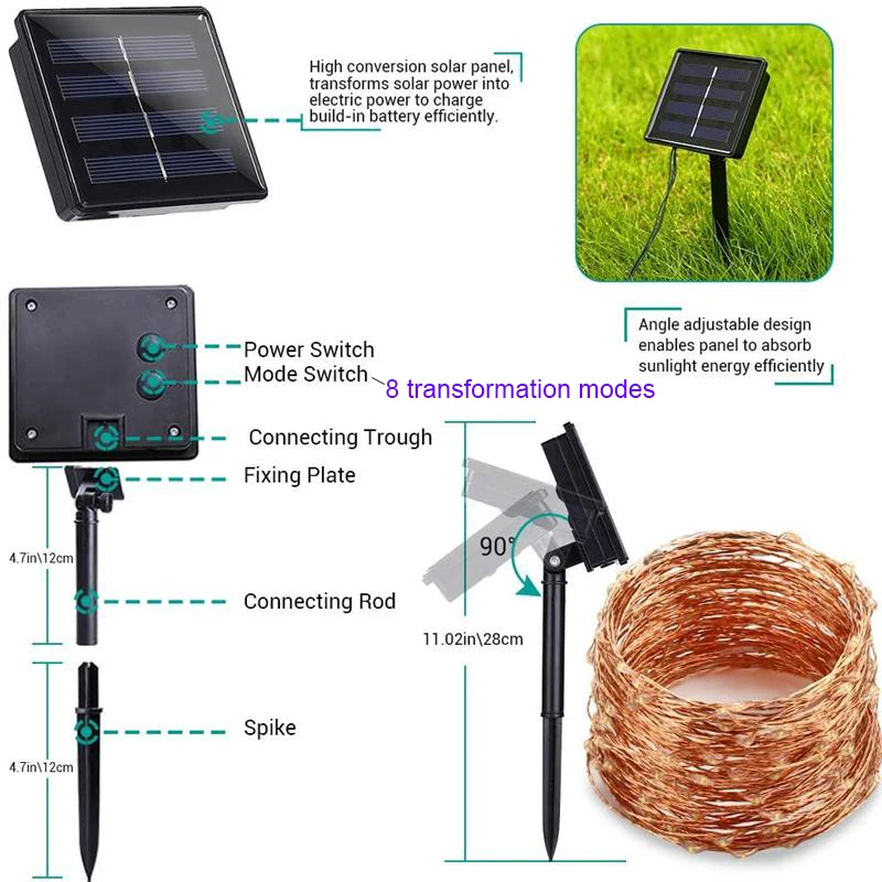 Новогодняя Солнечная лампа Светодиодная наружная 10 м30 мled гирлянда сказочные Праздничные рождественские гирлянды солнечные садовые водонепроницаемые светильники