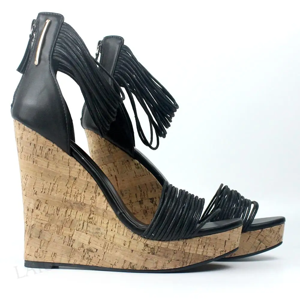 BERZIMER/женские босоножки на танкетке; Сезон лето туфли с ремешком вокруг лодыжки; Черные туфли на платформе; Женские босоножки; Большие размеры 34-43