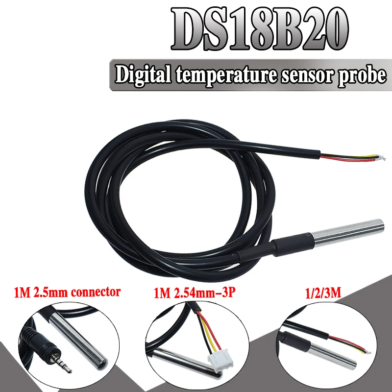 Длина кабеля: 100 см, 200 см, 300 см Размер оболочки из нержавеющей стали:6*50 мм Диапазон источника питания: от 3,0 в до 5,5 В Диапазон рабочих температур: от-55 °C до + 125 °C (от-67 °F до + 257 °F) Диапазон температур хранения: от-55 °C до + 125 °C (от-67 °F до + 257 °F) Точность в диапазоне от-10 °C до + 85 °C: ± 0,5 °C. Выходные выводы: желтый (VCC), красный (DATA), черный (GND) Водонепроницаемый Для каждого вывода мы используем 30 линий лужения, которые отличаются от проводов других датчиков DS18B20, они мягкие и обладают лучшей стойкостью к окислению Гибкость сопротивления Улучшенная теплопроводность