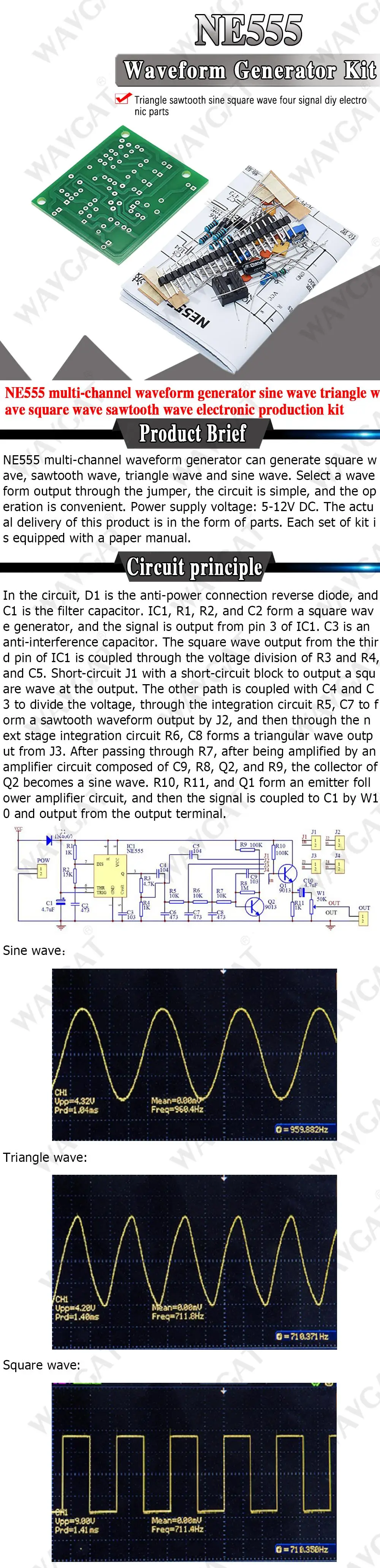 Модуль генератора импульсов DC6-12V NE555 синусоидальныйтреугольныйквадратный генератор волн многоканальный генератор сигналов DIY Kit