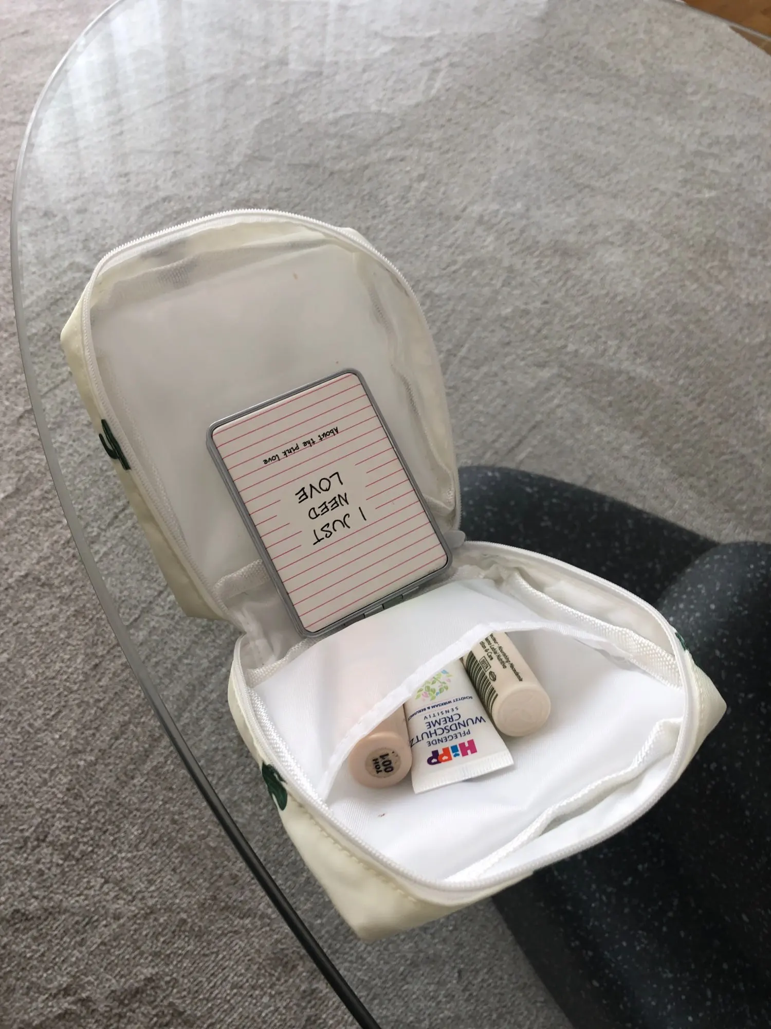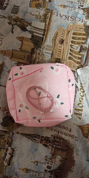 Почему-то думала, что косметичка будет чуть меньше, но все равно отличная. Еще и резинку для волос в подарок кладут