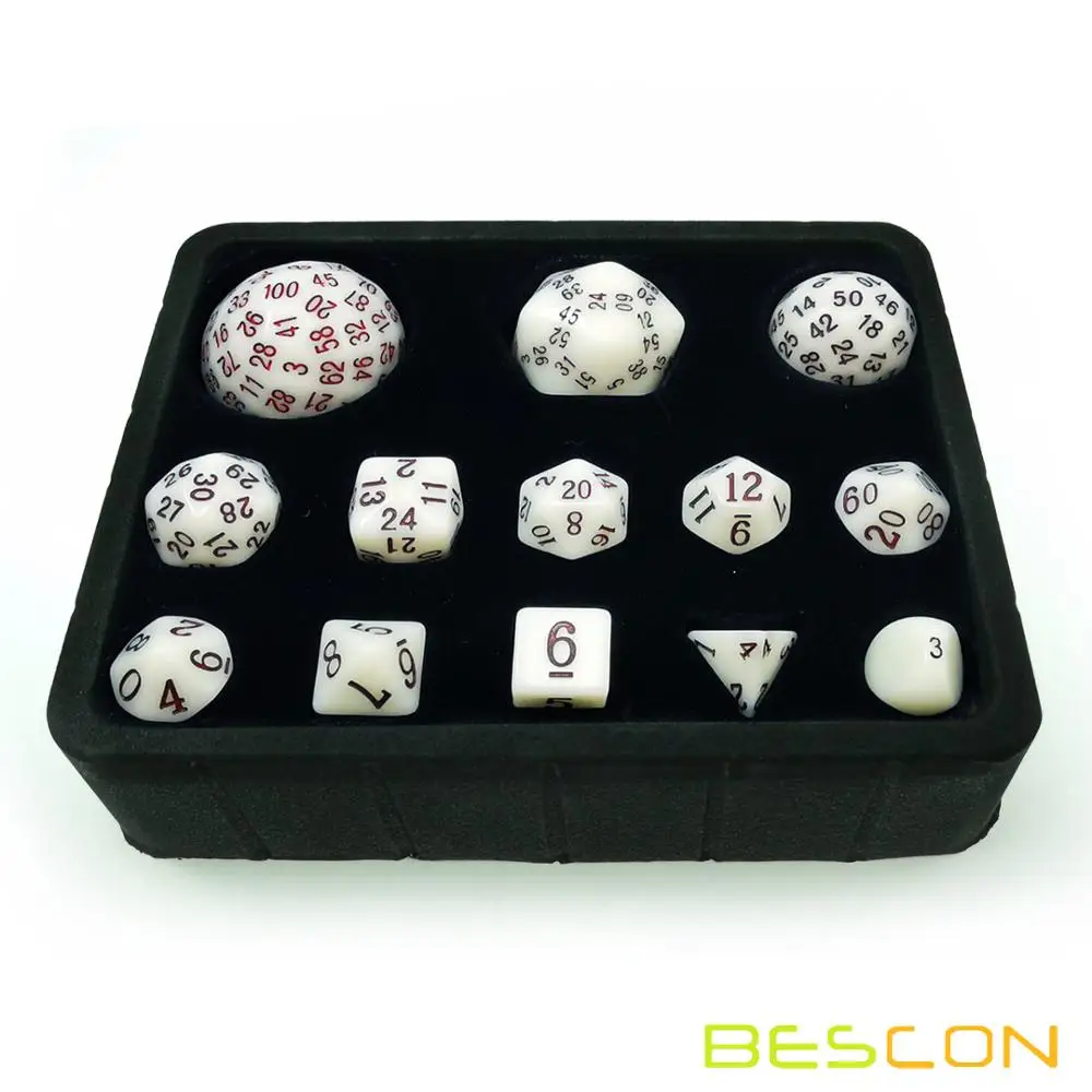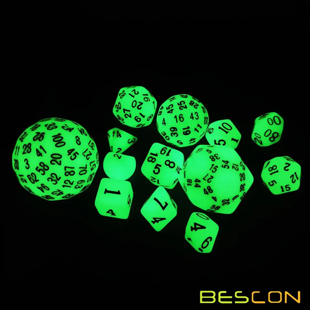 Bescon Супер Светящиеся в темноте полный полиэдральный набор костей для ролевых игр 13 шт. D3-D100