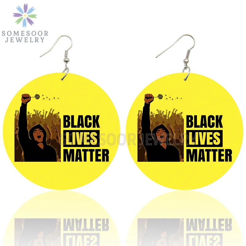 SOMESOOR, африканские деревянные серьги-капельки с изображением черной жизни, с надписью Flight, raсовая различимость сила, кулак, подарки для женщин