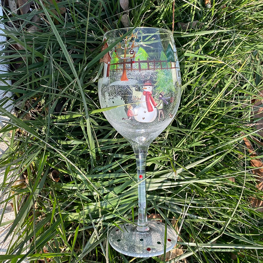 Рождественская тема, расписанный вручную бокал для вина, бокал для шампанского, бокалы с канавками, Хрустальные чашки, креативные домашние бары, отеля вечерние посуда для напитков